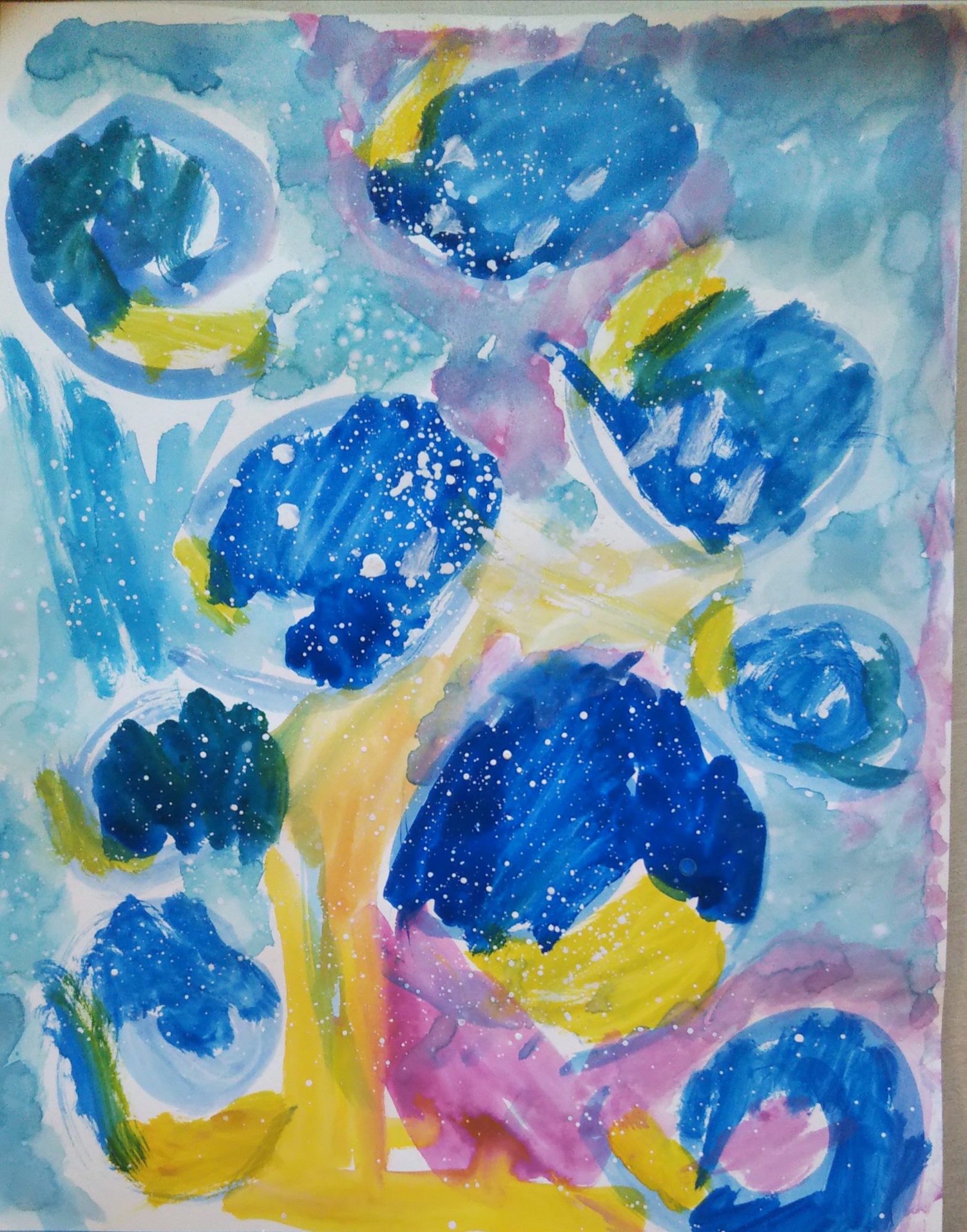 絵の具がかすれていたり、にじんでいたり、いろいろな筆の使い方があって立体感がでているのがうちゅうっぽさをもっと出しているなって思ったよ〜!