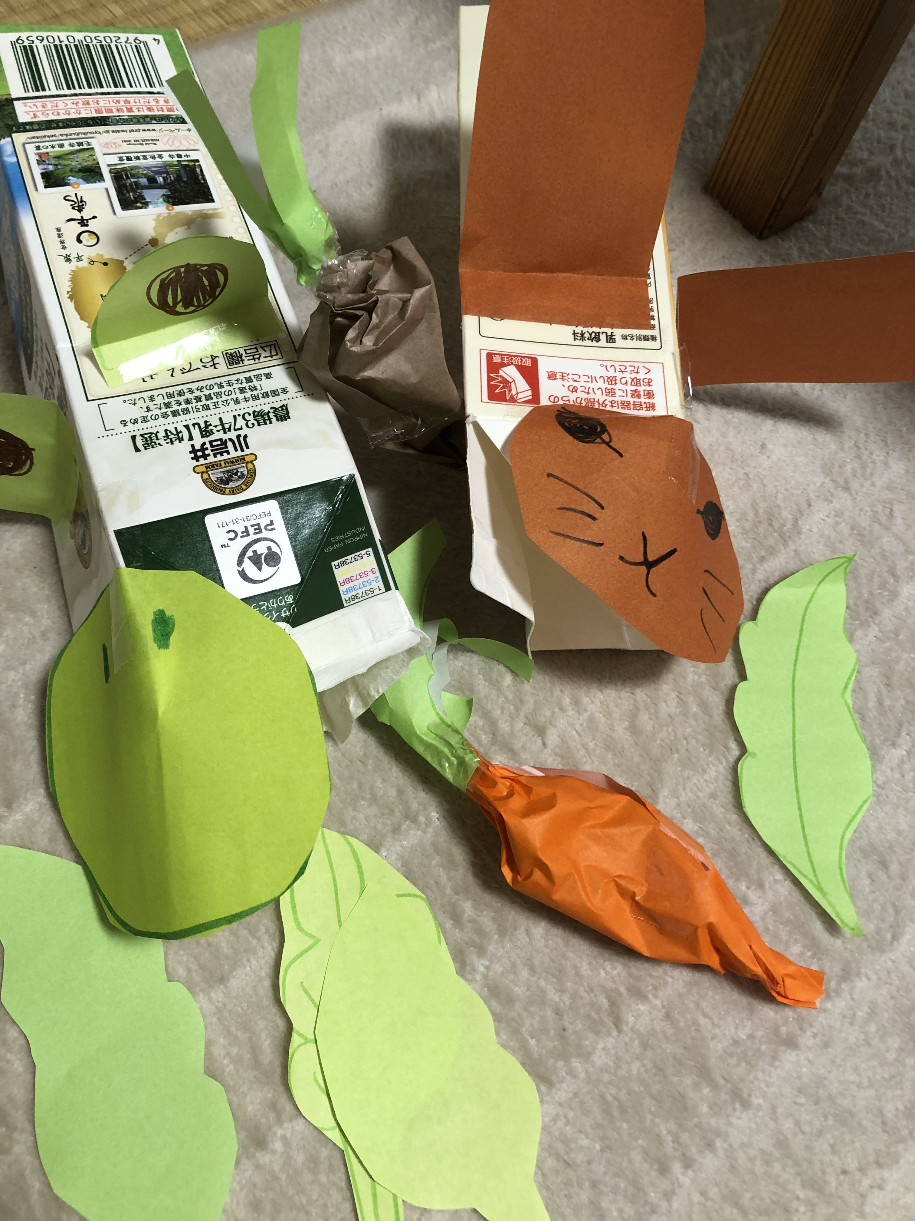 ウサギとカエルのパクパク動物を作ってzoomで一緒に遊びました!みんなの顔が見れてとっても嬉しかったです!