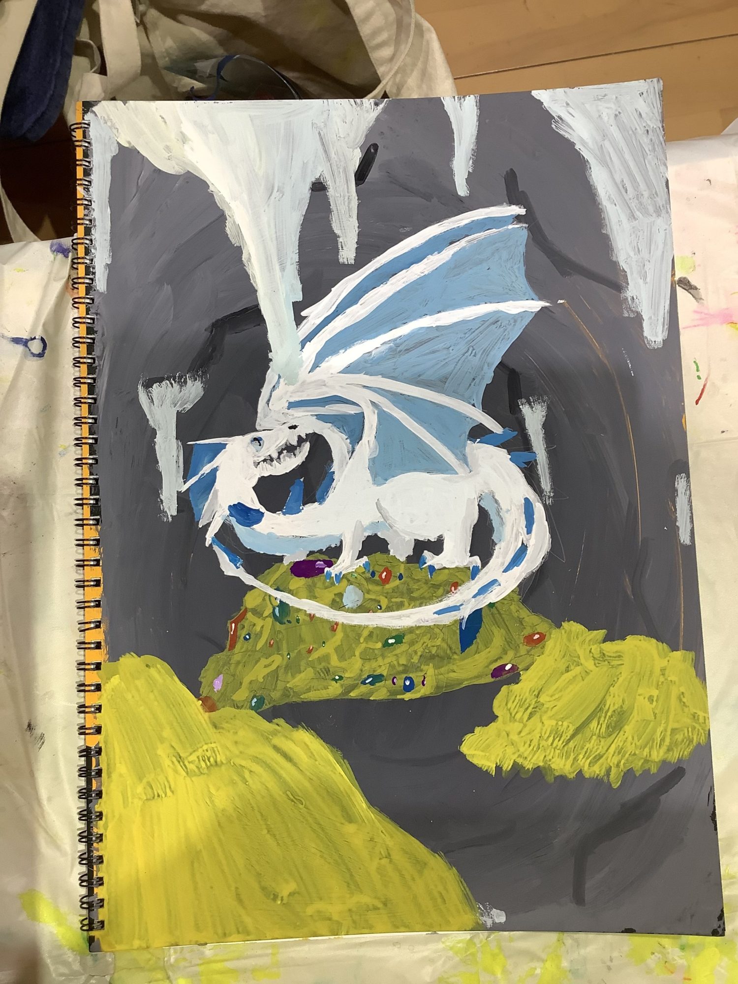 2022年9月10日 7:23 PM こんにちは!アートフレンズのカナです!! とってもかっこいいオリジナルスケッチブックになりましたね👍✨✨ お宝を守ってるドラゴンが白と水色で神聖な感じがして強そうだし、かっこいい!🐉⚡️ 洞窟の表現も手前から奥にかけて暗くなっていっていたり、手前に鍾乳石があって奥行きを感じました( ^∀^)👍 ログインして返信する ↓