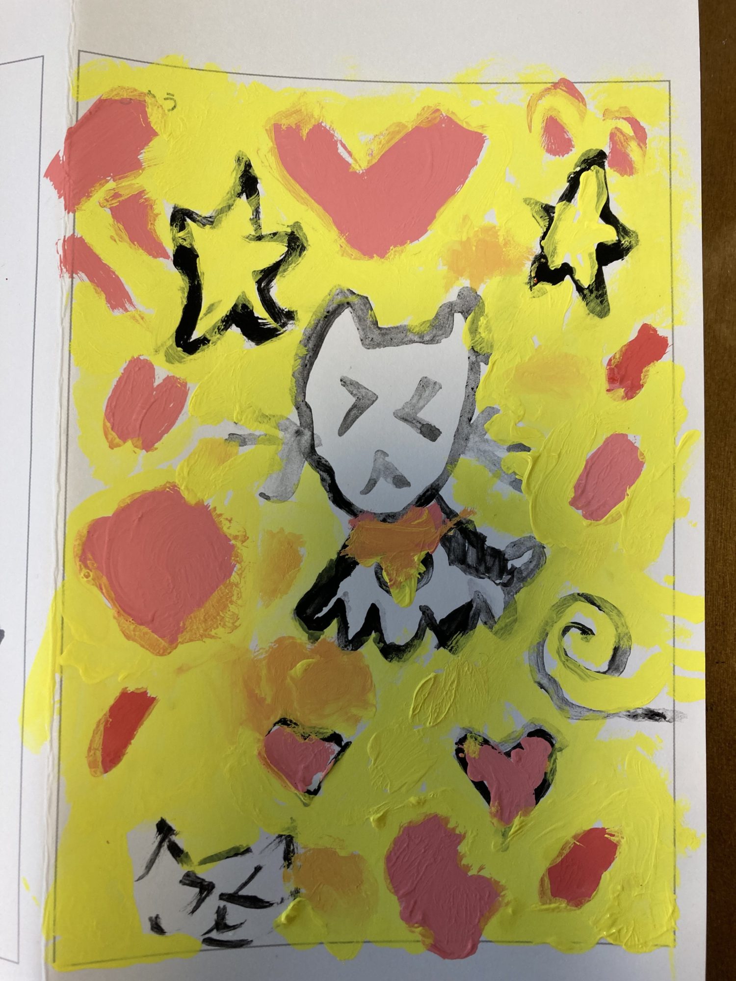 かき氷を食べて美味しすぎる表情の猫を描きました。
