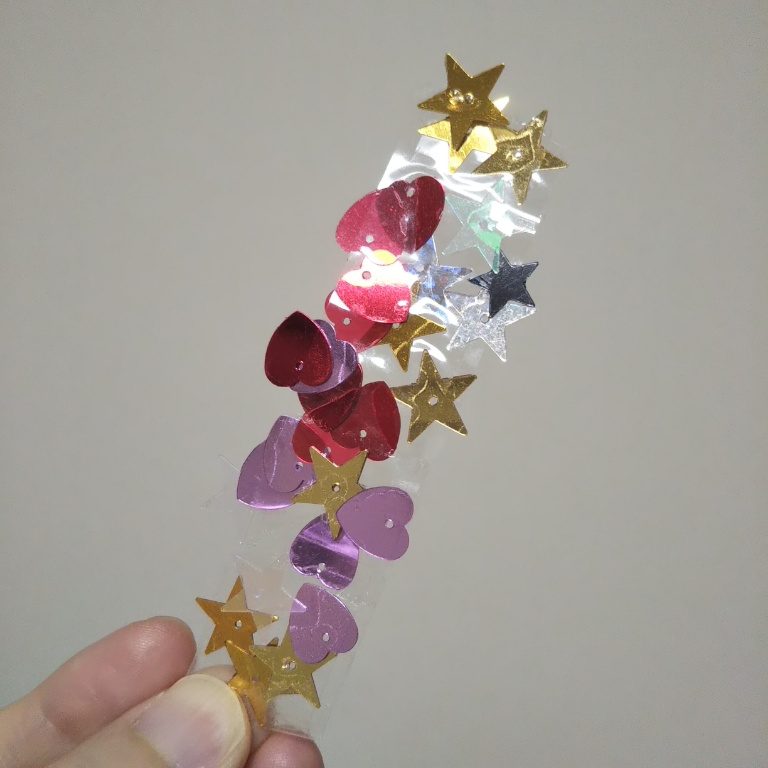 スパンコールを使ってたくさんのキラキラおりがみとしおりを作ってくれたんだね✨