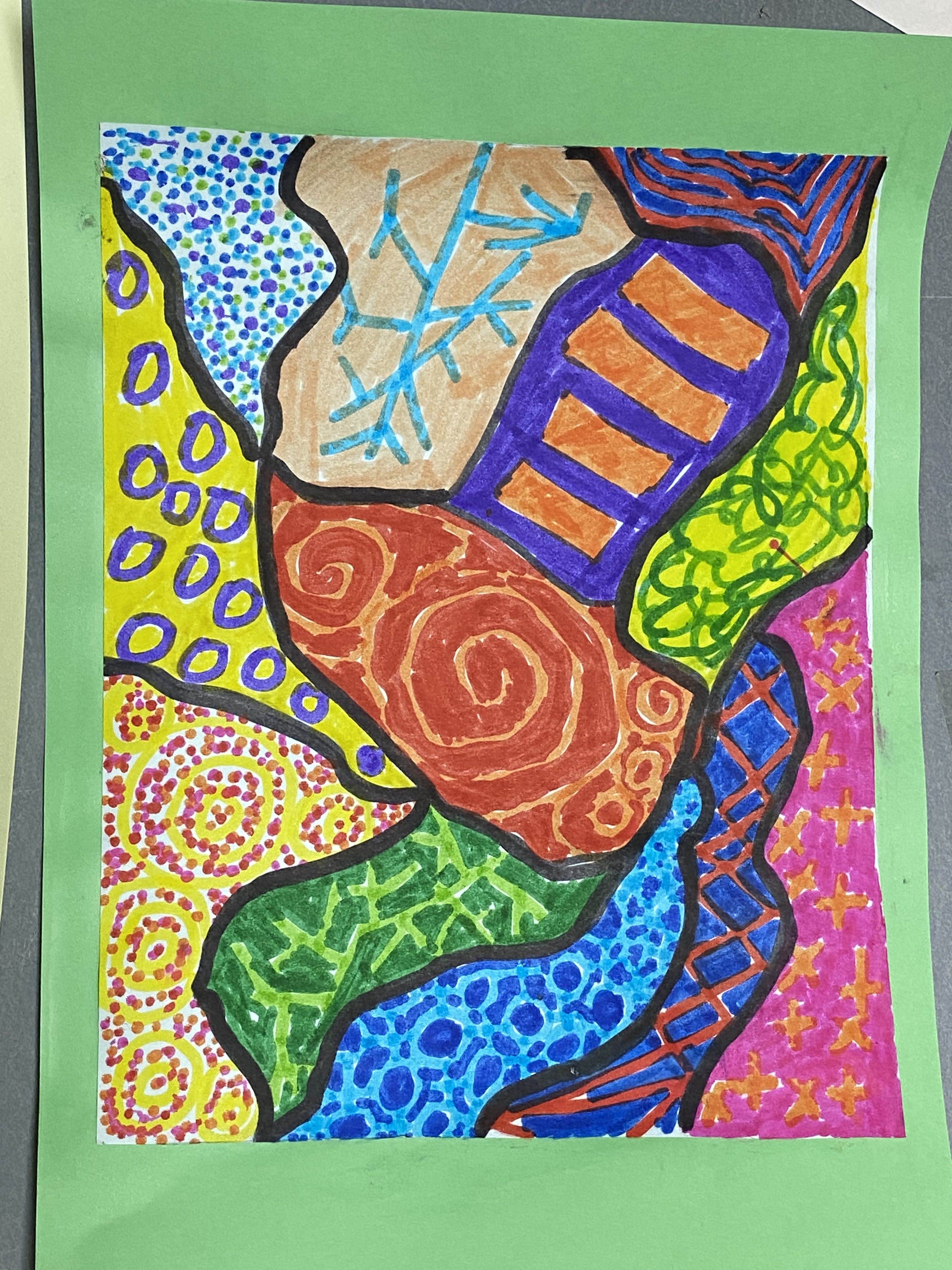 いろんなまるやてんてんやしかくをたくみに登場させてどこにどう入れようかなぁ、それを何色で、、って考えてかいてるのが伝わってきます!!