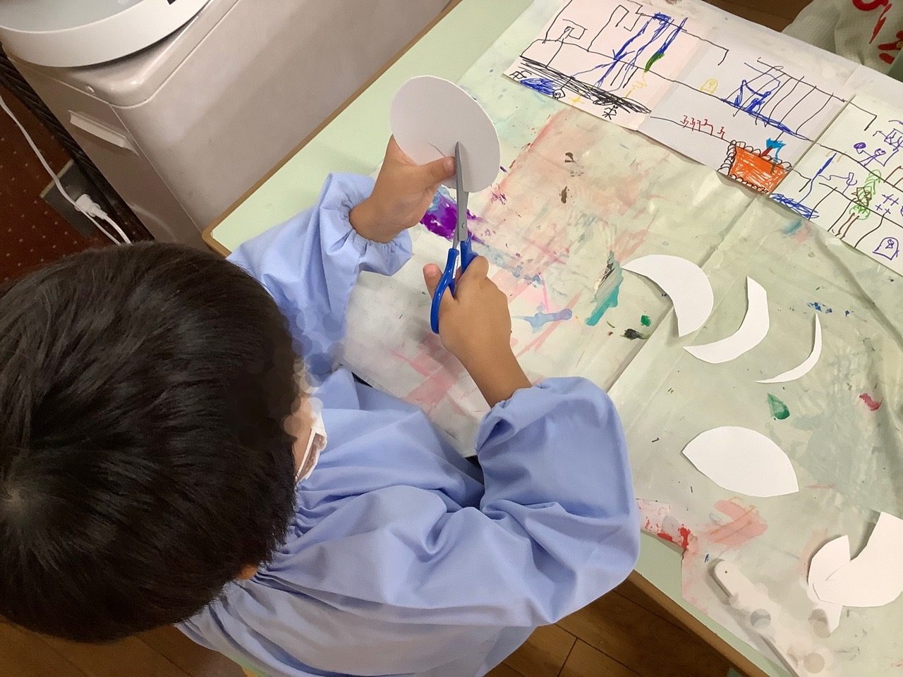 画像の子は年長さんなので丸い画用紙をみんなより多くつかい