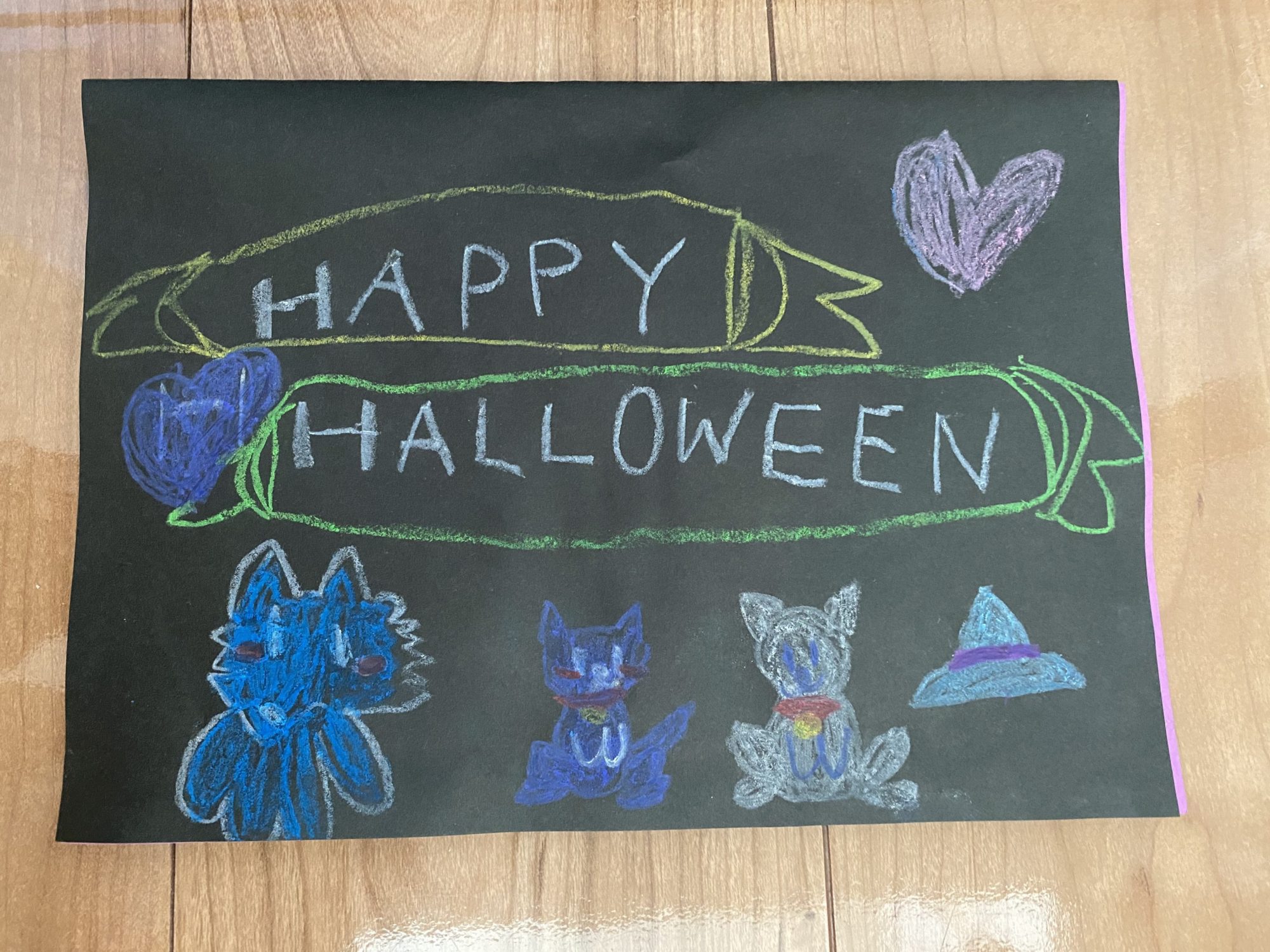 カードの中のひらひらのところに、コウモリとハートをくりかえし描くことで、刺繍や、レースの模様みたいになっているのがとってもかわいい〜🥰