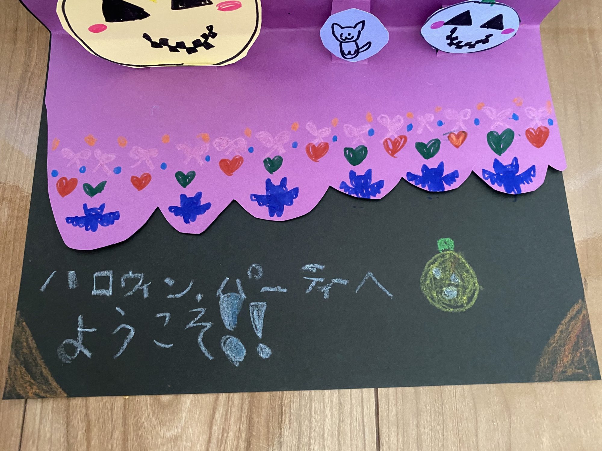 りこせんせい 先生2022年10月12日 9:12 AM なるさん、こんにちは!りこせんせいです☺️ くろねこの女の子が開く、ハロウィンパーティー!✨ 衣装もねこみみがついていて、とってもキュートだね〜🥰💕 カードの中のひらひらのところに、コウモリとハートをくりかえし描くことで、刺繍や、レースの模様みたいになっているのがとってもかわいい〜🥰 確かに!クレヨンを使うのは確かに久しぶりですよね🤩 たまに触ると、幼児さんの時より器用になった手で制作ができて、また違った楽しさがありますよね!😌 ログインして返信する ↓