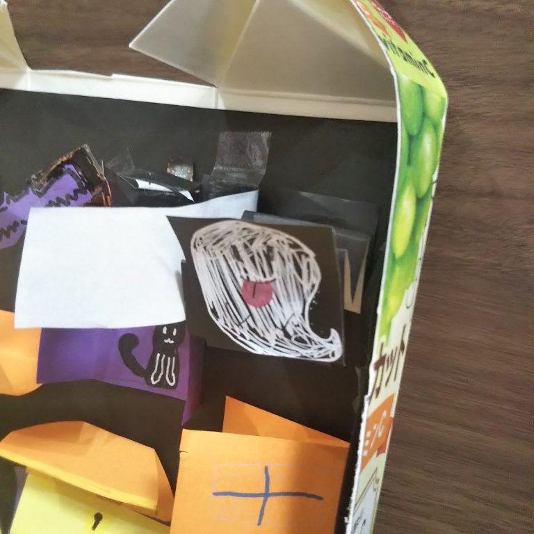 おばけはふだんはかくれていて、黒い紙を外すとびよーんと飛び出してきます!