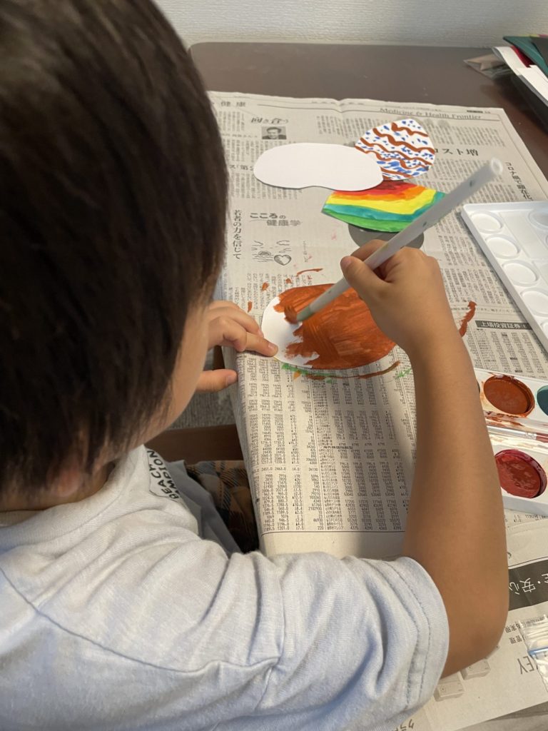 虹色の雲、水たまり!形が、いろんな楽しいものに大変身して、とっても賑やかなお絵描きになったね〜💕