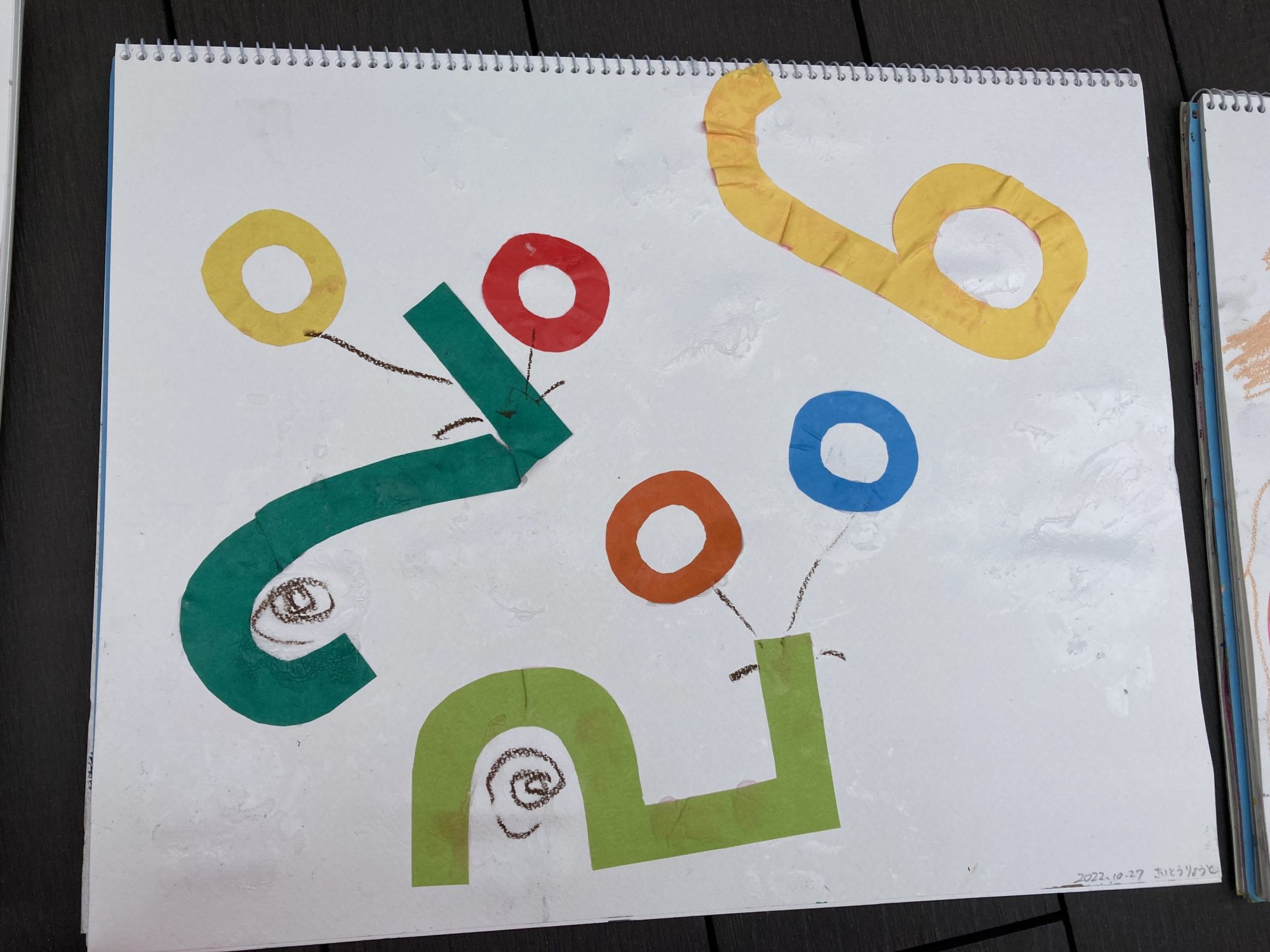 よく見ると目の部分(大触角)の下にちゃんと小触角が描いてあって、よく観察してるんだな…とちょっと驚いてしまいました。