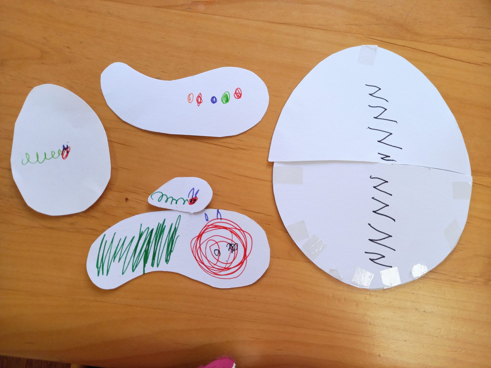 卵を割ると思ってなかったらしく丁寧に飾り、もう一枚の方で卵を割りました。zZは寝てるマークだそうだす。