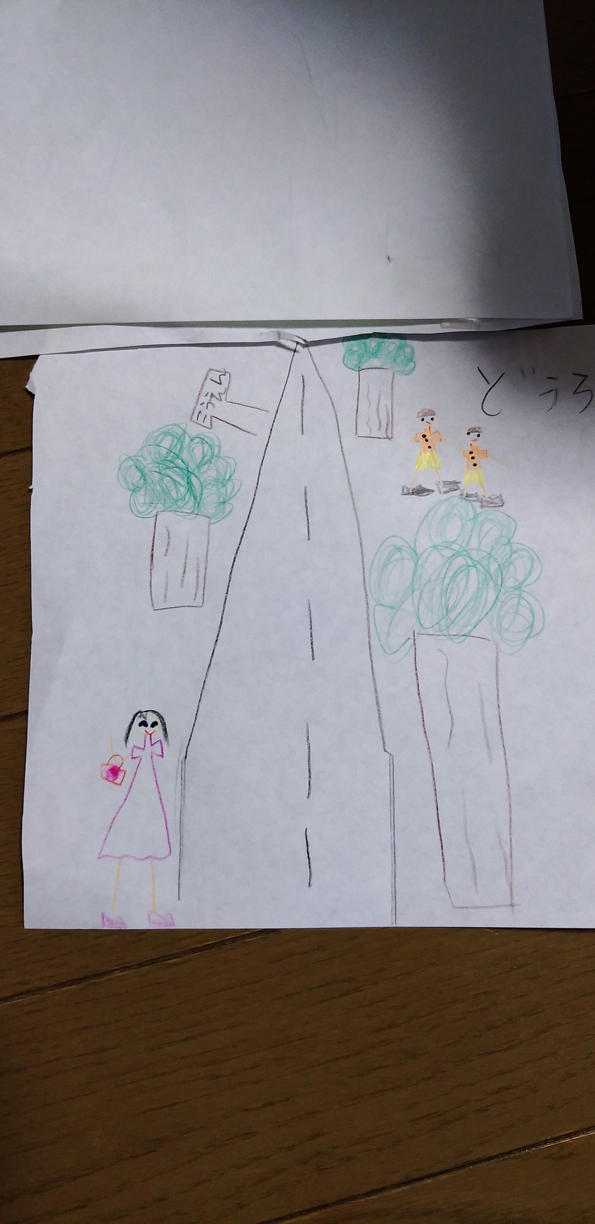 木もちゃんと手前と奥の大きさが違って描けていて、紙の中の世界がぐっと広がっていくように見えます☆