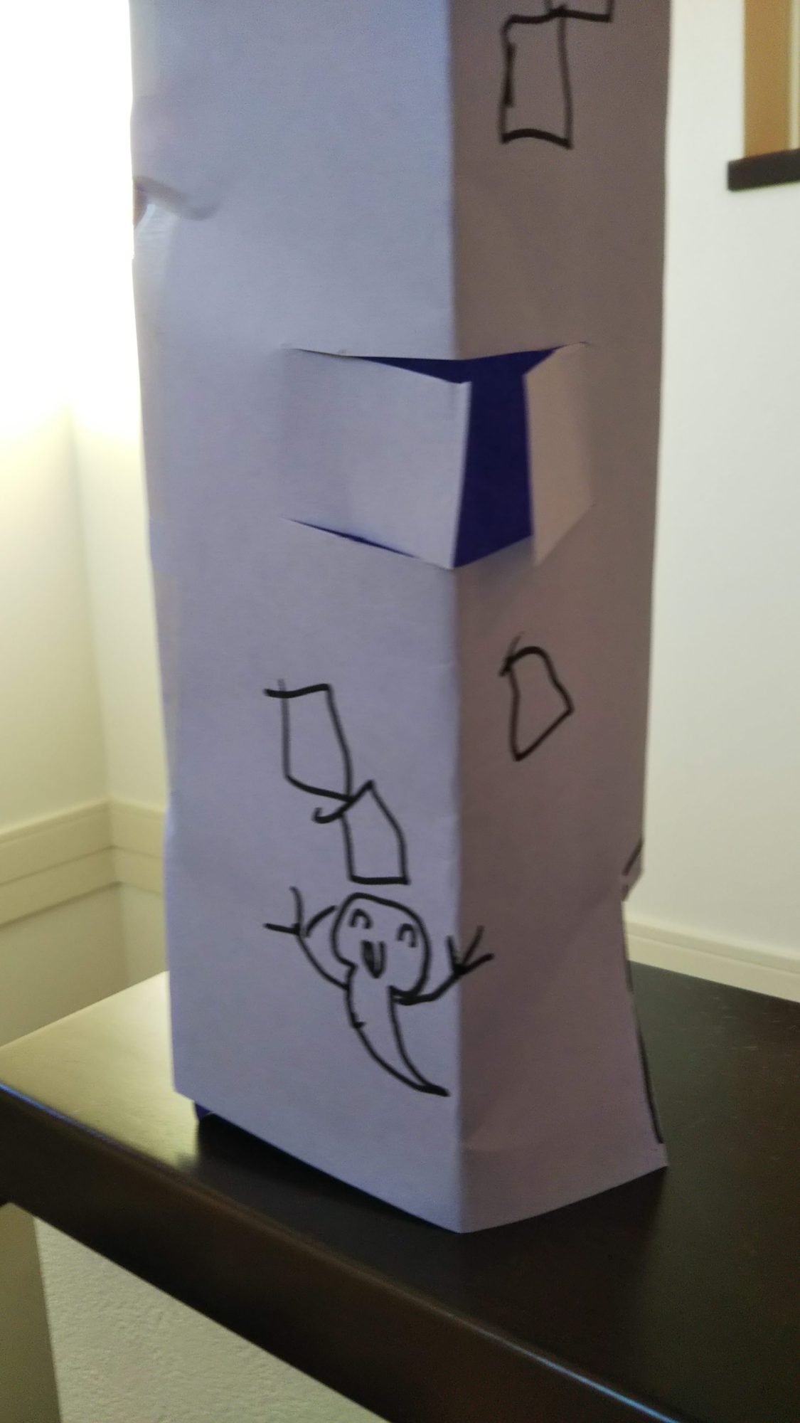 かぼちゃのかごと、なが~いかごの二つあるんだね!長いかごはおばけチャンがニコニコしてて切れ込みが空いてる!お城みたいだね🏰