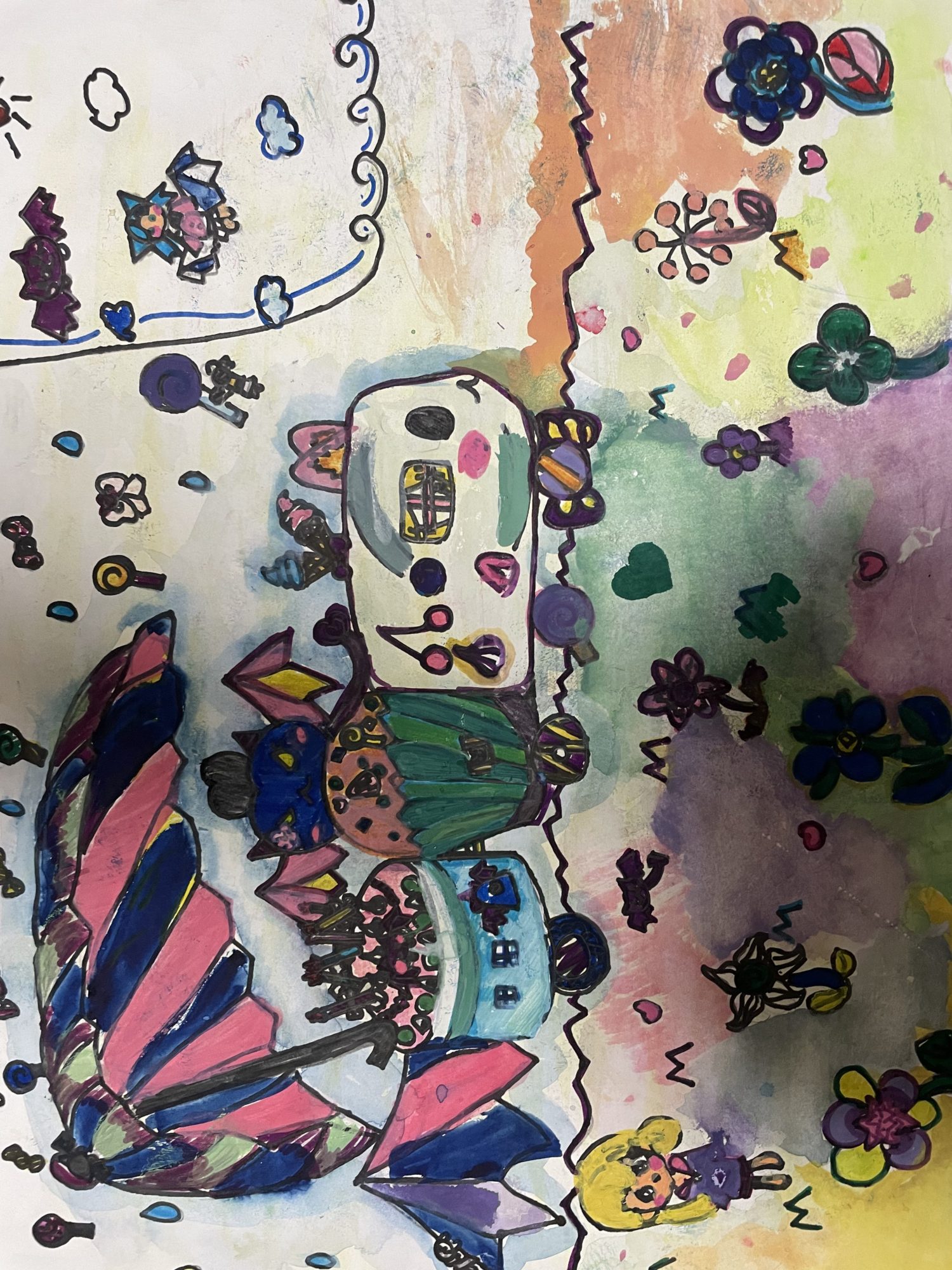 中山 未悠(なかやま みゆ) アートフレンズ職業・専門:多摩美・油画専攻 卒業2022年11月28日 7:16 PM こはるさんはじめまして! カラフルでキュートな魔界ですね💘 虹色の芝生にお花も一輪一輪こだわっていてすてきです。寝転がってみたいです… スイーツバスは飴を降らせてやってくるんだね よーくみると雨もふっていますね☔️おもしろい! あざやかでとっても楽しそう(´>‿<`) ログインして返信する ↓