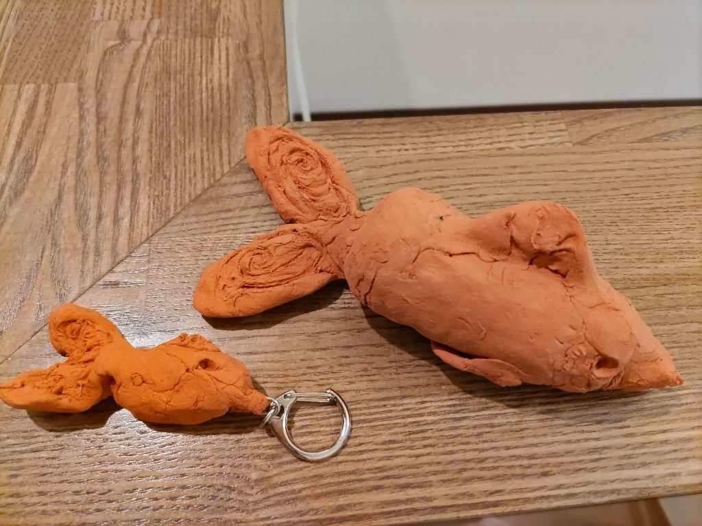小さい方の魚はキーホルダーのチェーンをさしこんでキーホルダーにしました!