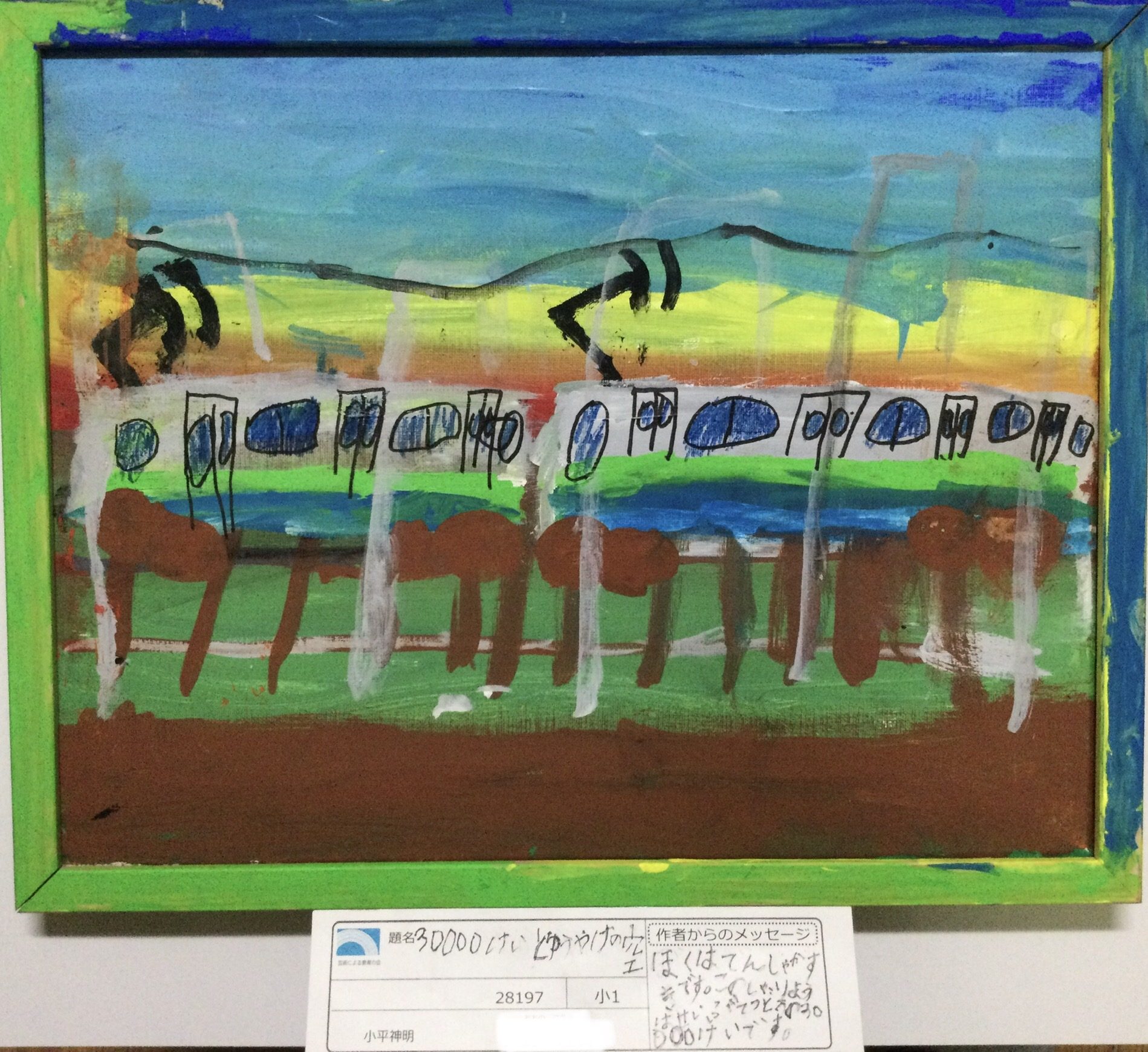 手前の電柱と奥の電車を重ねて描けていて、空間表現がもうできてますね!すごい!