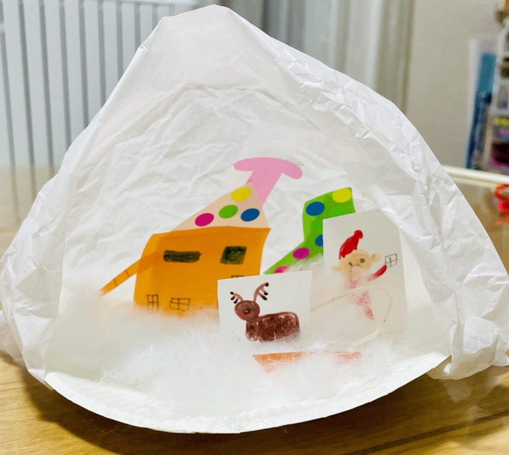 わたとかみでできた ゆきも クリスマスの夜をすてきにしてるね!