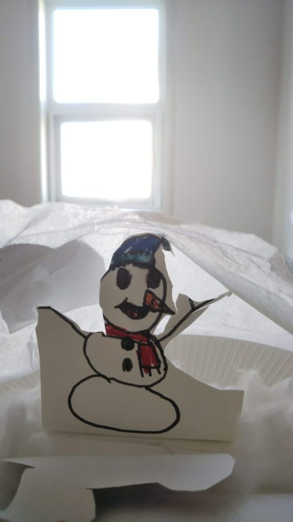 カラフルくまちゃんと雪だるま、素敵なお家で暮らしてて、仲良く楽しそう!