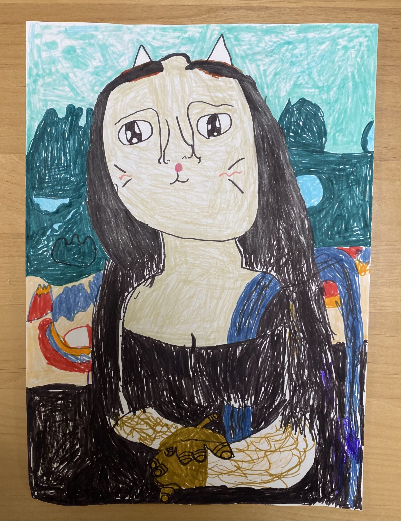 じゅんこ先生 先生2022年12月21日 9:04 AM モナリザへのオマージュ!!!!! モナリザをねこちゃんにするとは!! 発想がすごいですね✨ 背景や手の表現など細かいところまでよく見て描いていますね😊💗 ペンで全部ぬったとは!!すごい集中力です ログインして返信する ↓