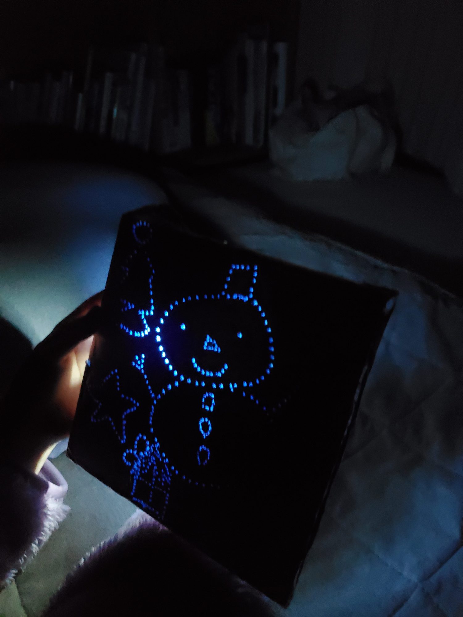 穴と穴の間隔が広いとあまりはっきりうつらないと気づいたようで、さらに穴を足していました。