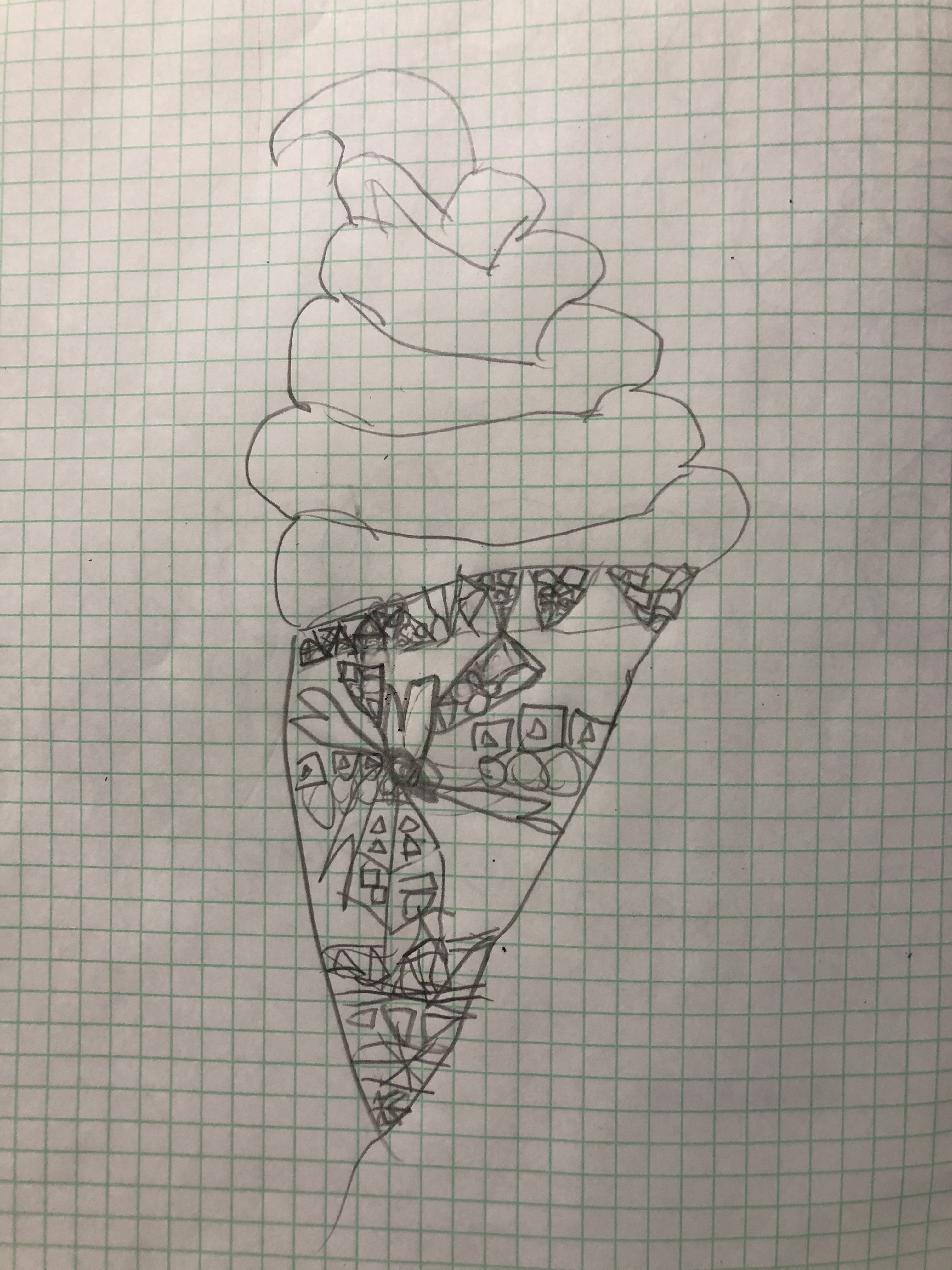 コーンをつつむ紙の模様がすごい! 色が付いた絵がたのしみですね!
