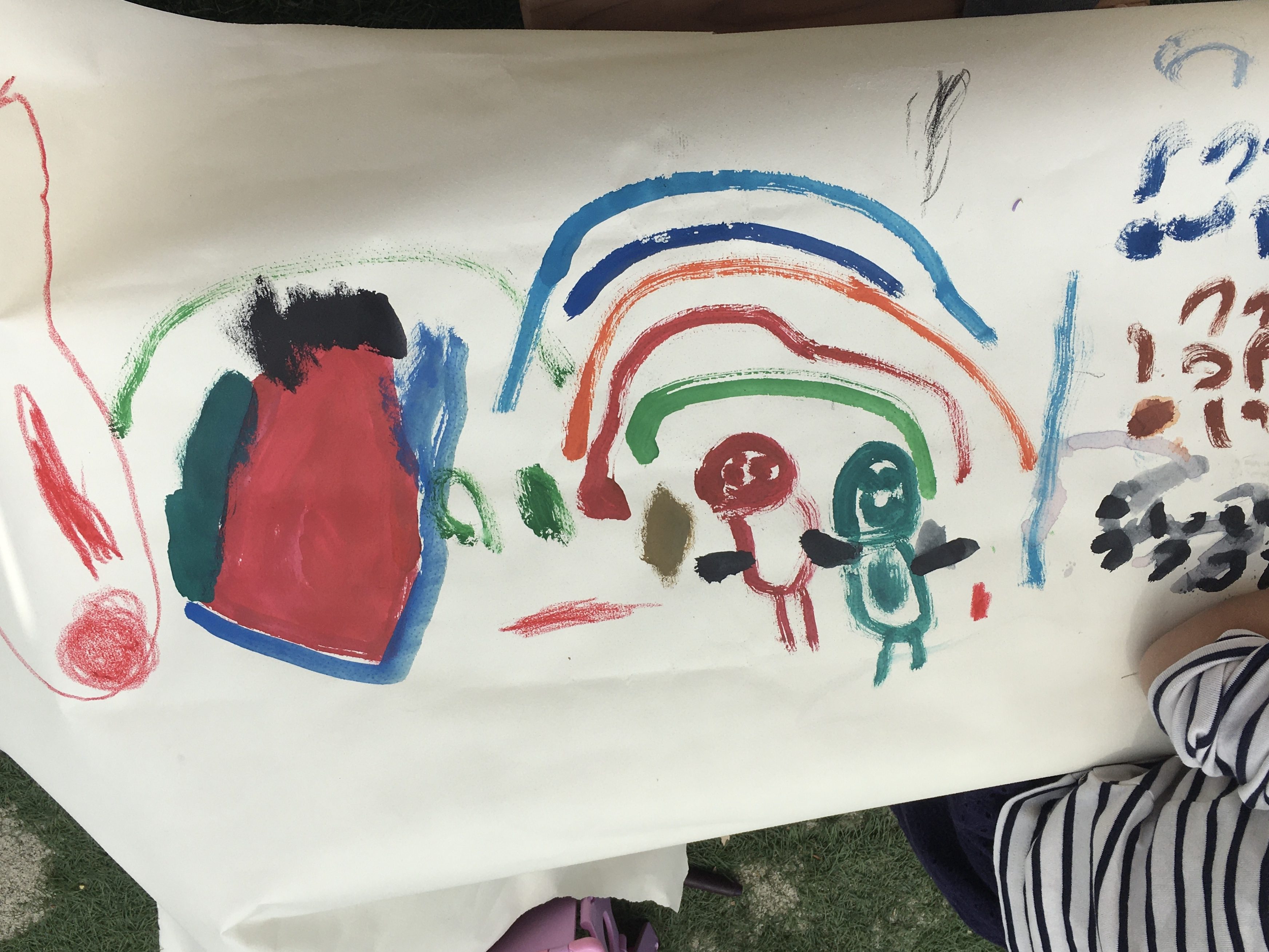 昨日けんけんぱを書いた壁紙の裏に絵具で描きました!