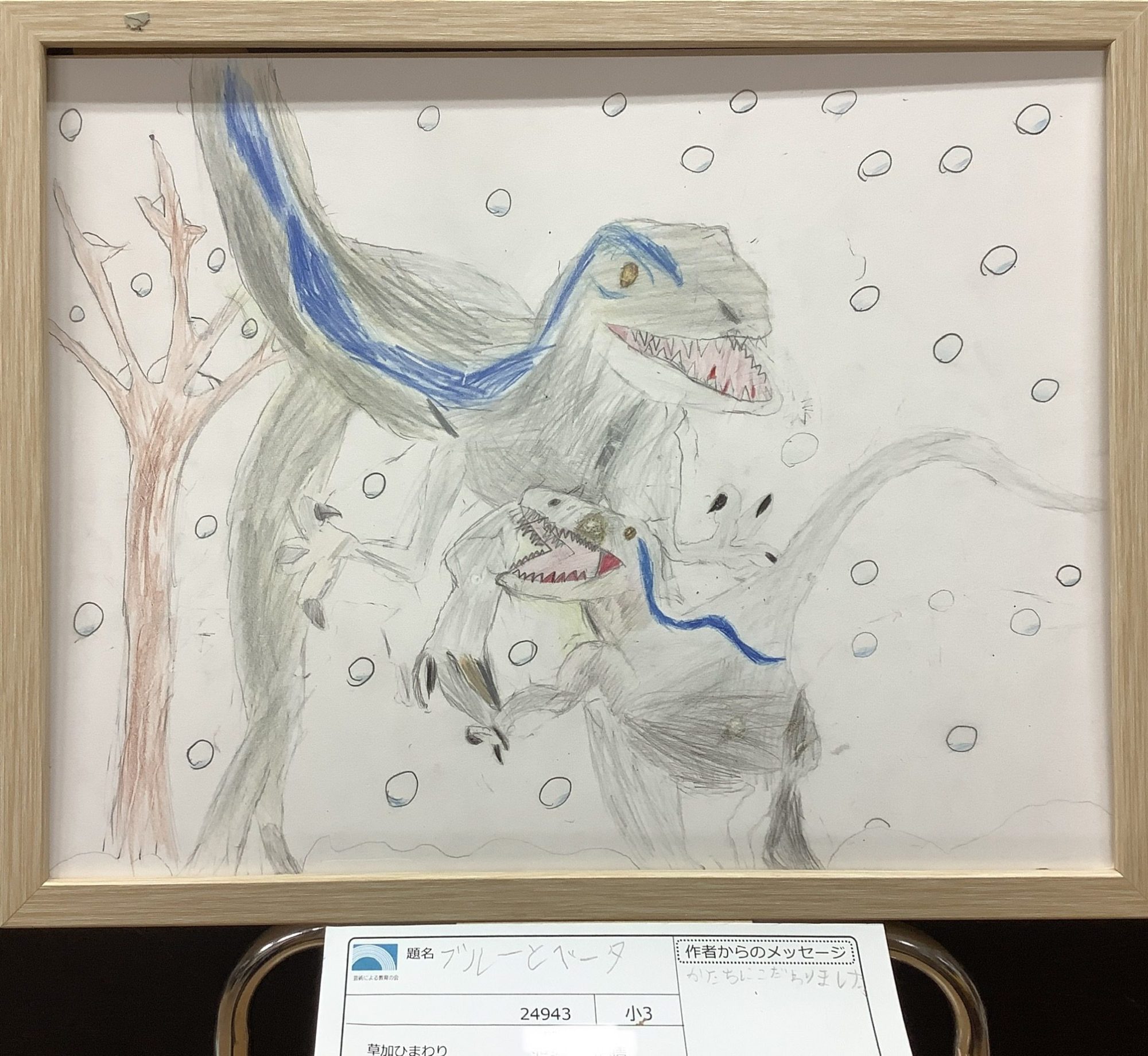 さちこせんせい 先生2023年2月3日 10:12 AM 長い期間、よく頑張って描きましたね^^ 後ろの木や背景を描き加えたり、恐竜同士の重なりを表現したことで、周りの空気感が出て画面が広く感じます☆ これからも、鉛筆作品増えていくのかな?! とっても楽しみにしています♪ ログインして返信する ↓
