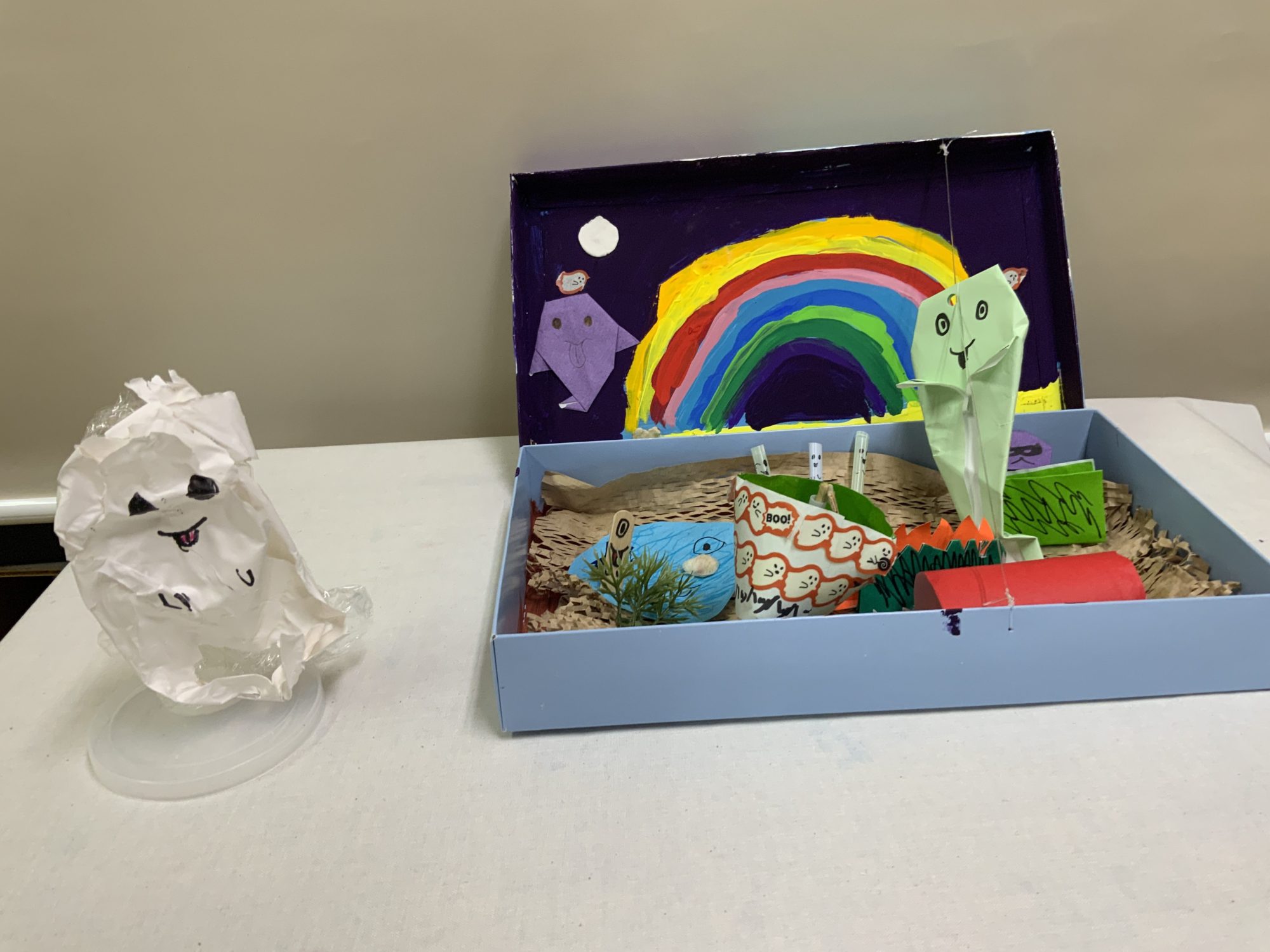 アイスの棒や折り紙などのオバケがいてとても賑やかな感じがいいね!
