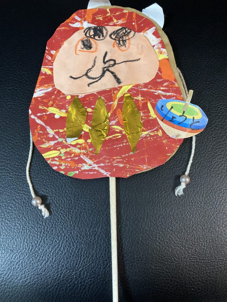 幼稚園で作っただるまのでんでん太鼓です。