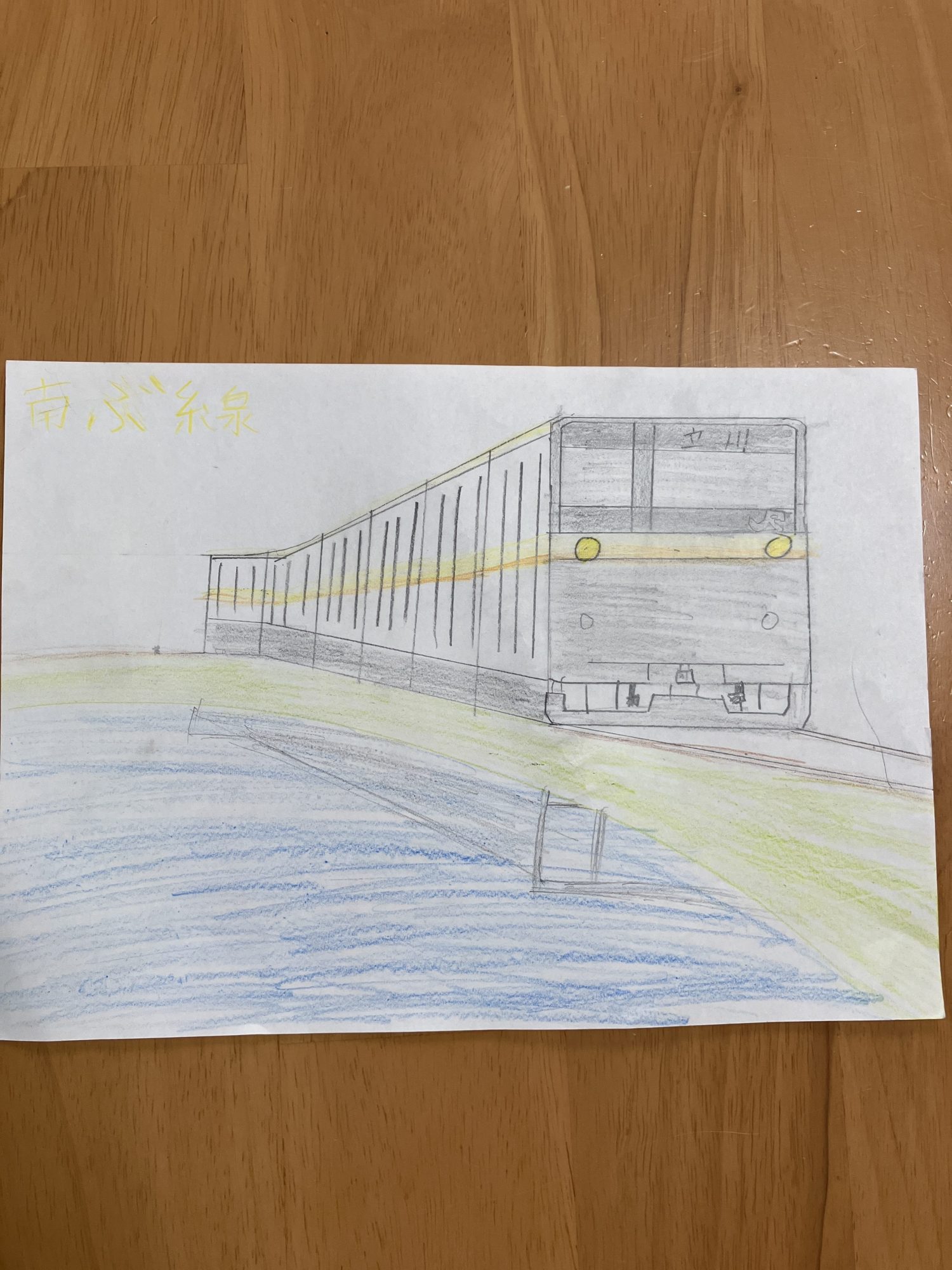 電車のカチッとした部分も定規で描いていて、奥から手前へ来る感じも遠近法でしっかりかかれているなっておもったよ!!