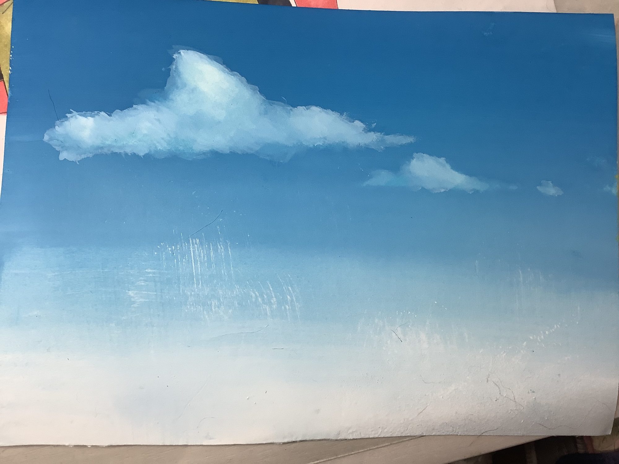奥行きを感じさせる雲の描き方や立体感が出ているね😊