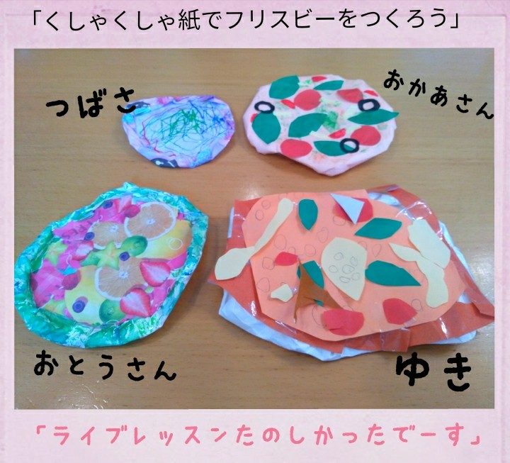 2020年4月12日 6:02 PM 本日はご家族でご参加いただきありがとうございました!✨ とっても美味しそうなピザが4つも!今夜はピザパーティですね(*^^*) ゆきちゃん、 トッピングをいろんなおおきさにチョキチョキきったりはったり、 そのうえにまたかいてみたり…と、 びじゅつをこころからたのしんでくれているのがつたわってきます! つばさくん、 ぐるぐるいいっぱいかいたね!なにあじかしら♪ たくさんとばしてあそんでみてね〜! ログインして返信する ↓