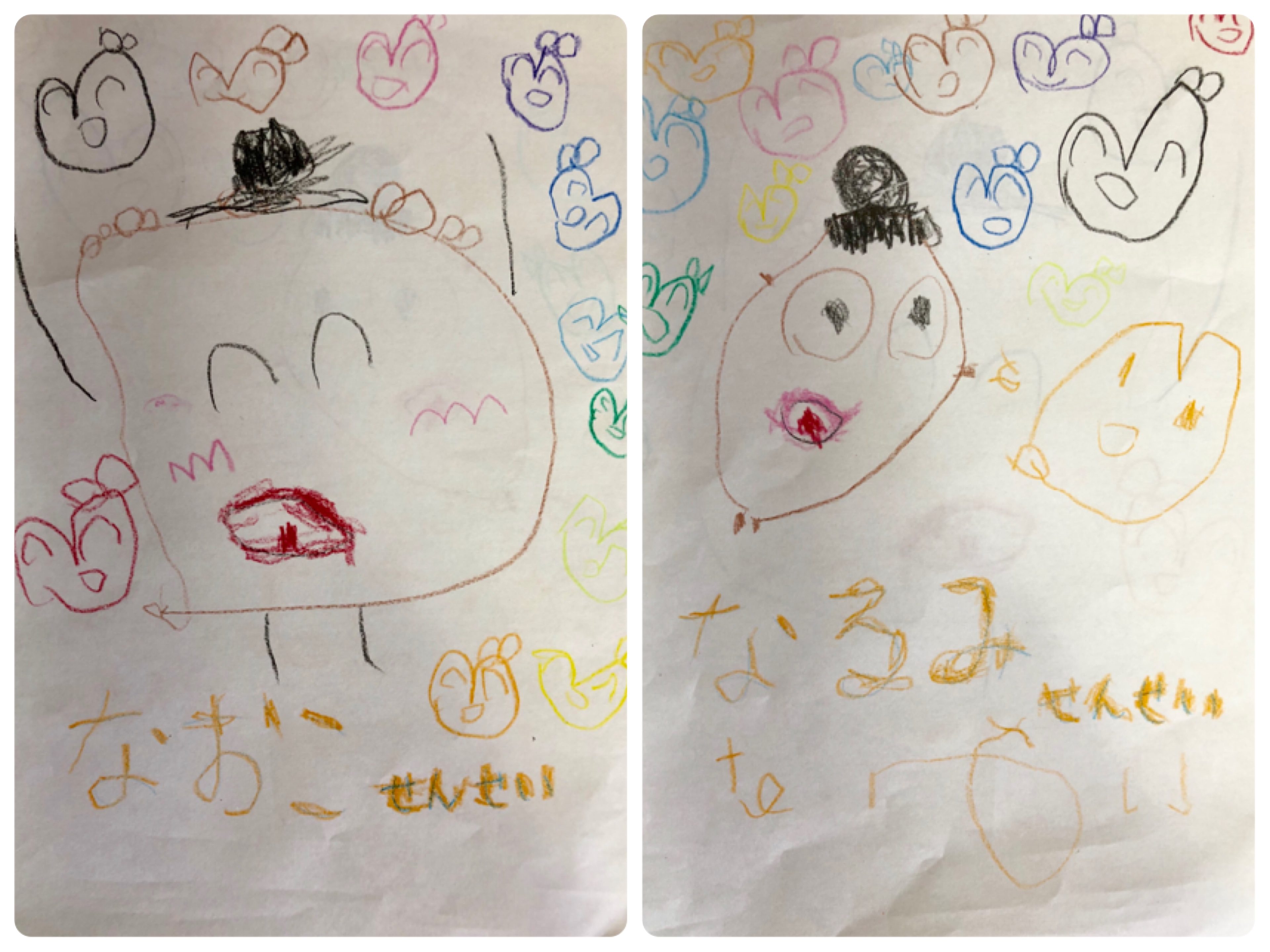 なおこ先生 (test00)2020年4月12日 4:44 PM ええええ〜〜!!! さっき見せてくれたお絵かき、アップしてくれたのね!!! 嬉しすぎる〜〜〜!!!!かわいい先生たちだ♡ ハートちゃんたちもリボンつけておしゃれしてるね♪ 先生も、可愛くて元気いっぱいのみーちゃんがだいすき♪ 元気をありがとう(o^^o) お母様いつもありがとうございます 癒されました・・・・・元気が出ます。本当にありがとうございます。 お顔から足が直接出ている頭足人を描く時期ですね〜! 本当に愛しい・・・! この時期は本当にあっという間に過ぎてしまうので、堪能してくださいね〜(o^^o) ログインして返信する ↓