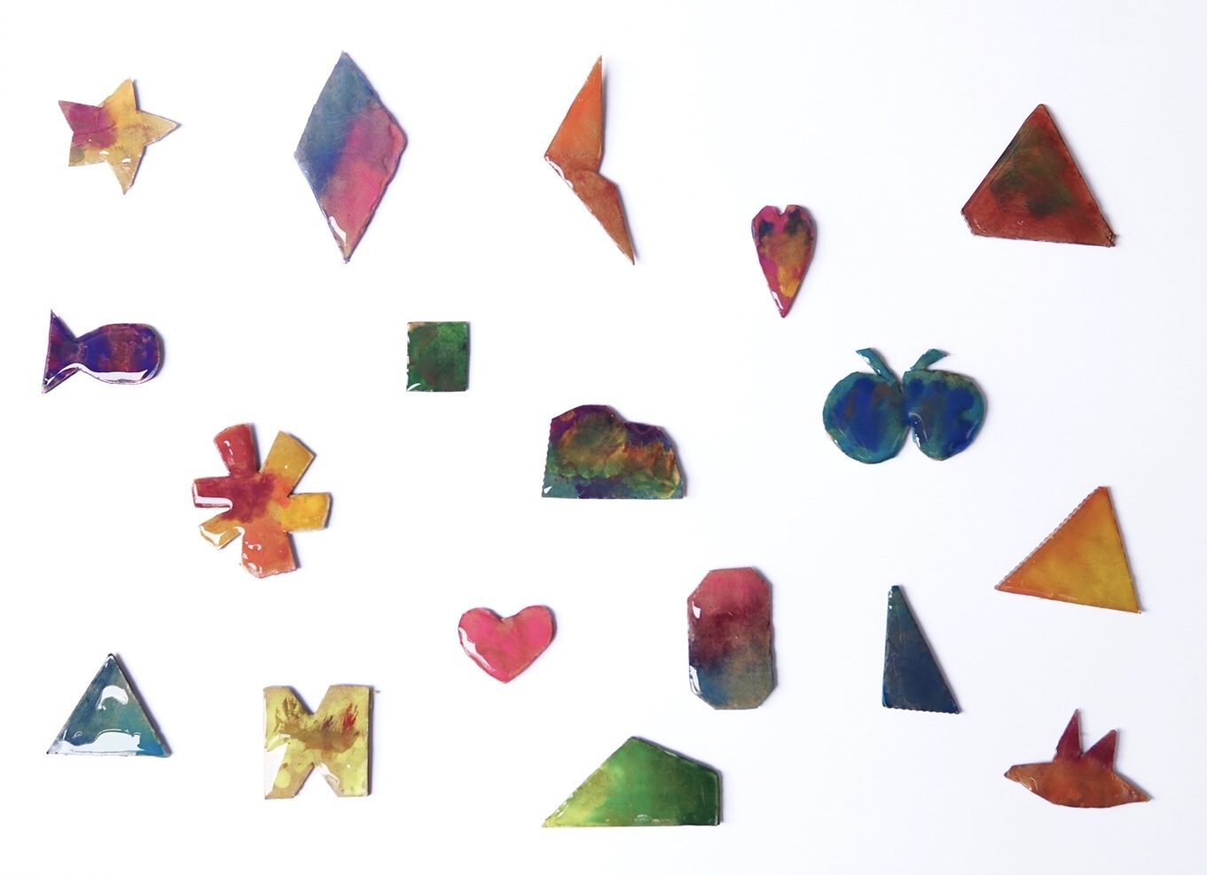 しんぺい先生は特に一番上も真ん中の尖った形のものと、一番右下の鳥のような形のものがお気に入りです。」