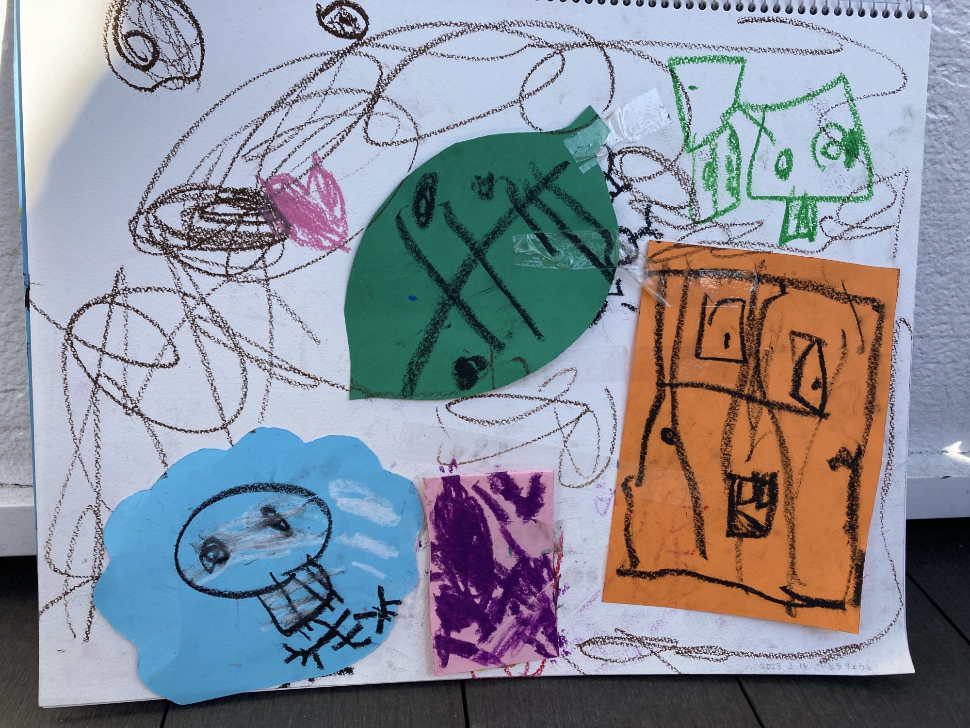 いつも突然何かを閃いた時、気分が乗っている時の絵は迷いなく楽しそうにクレヨンが踊っているようです。