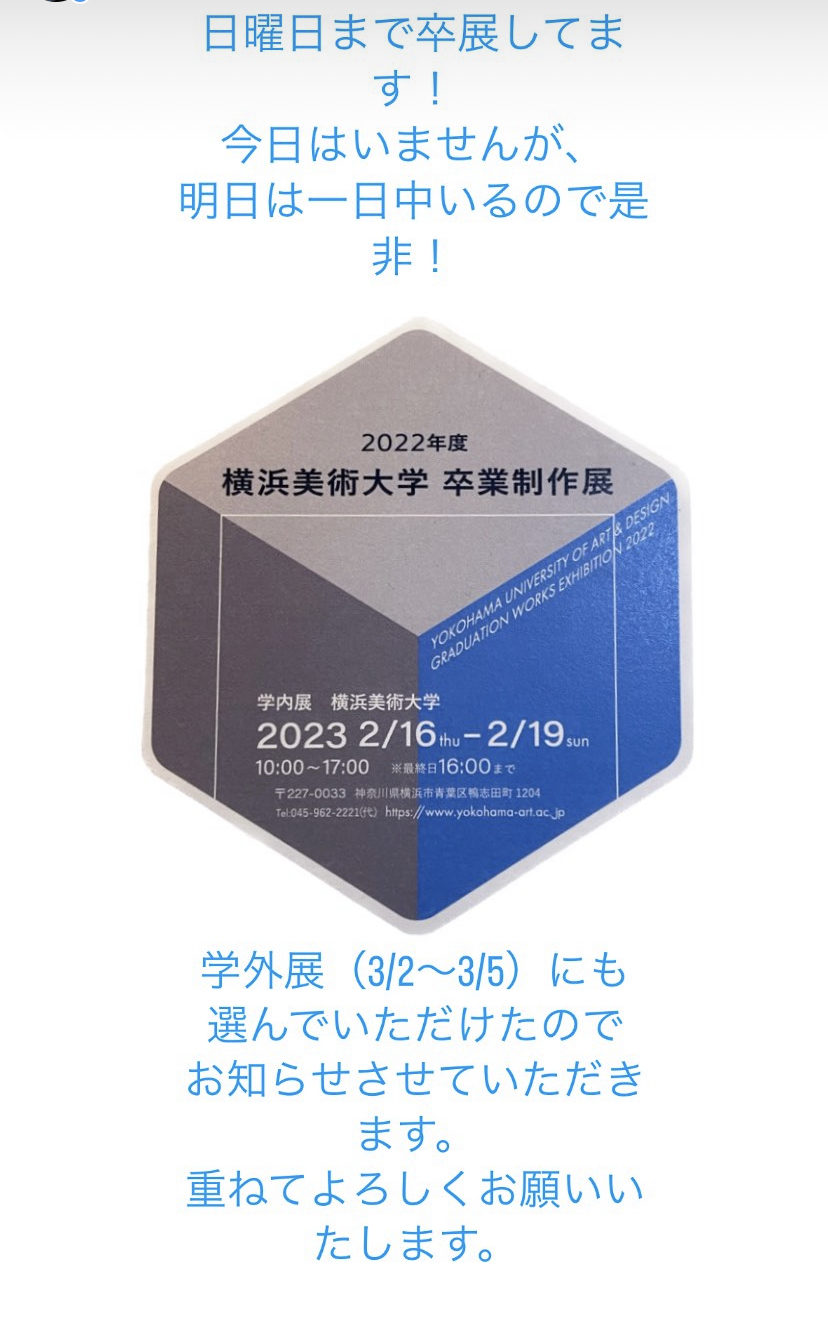 本日、土曜日が10時から17時、最終日の日曜日が10時から16時までとなっております。
