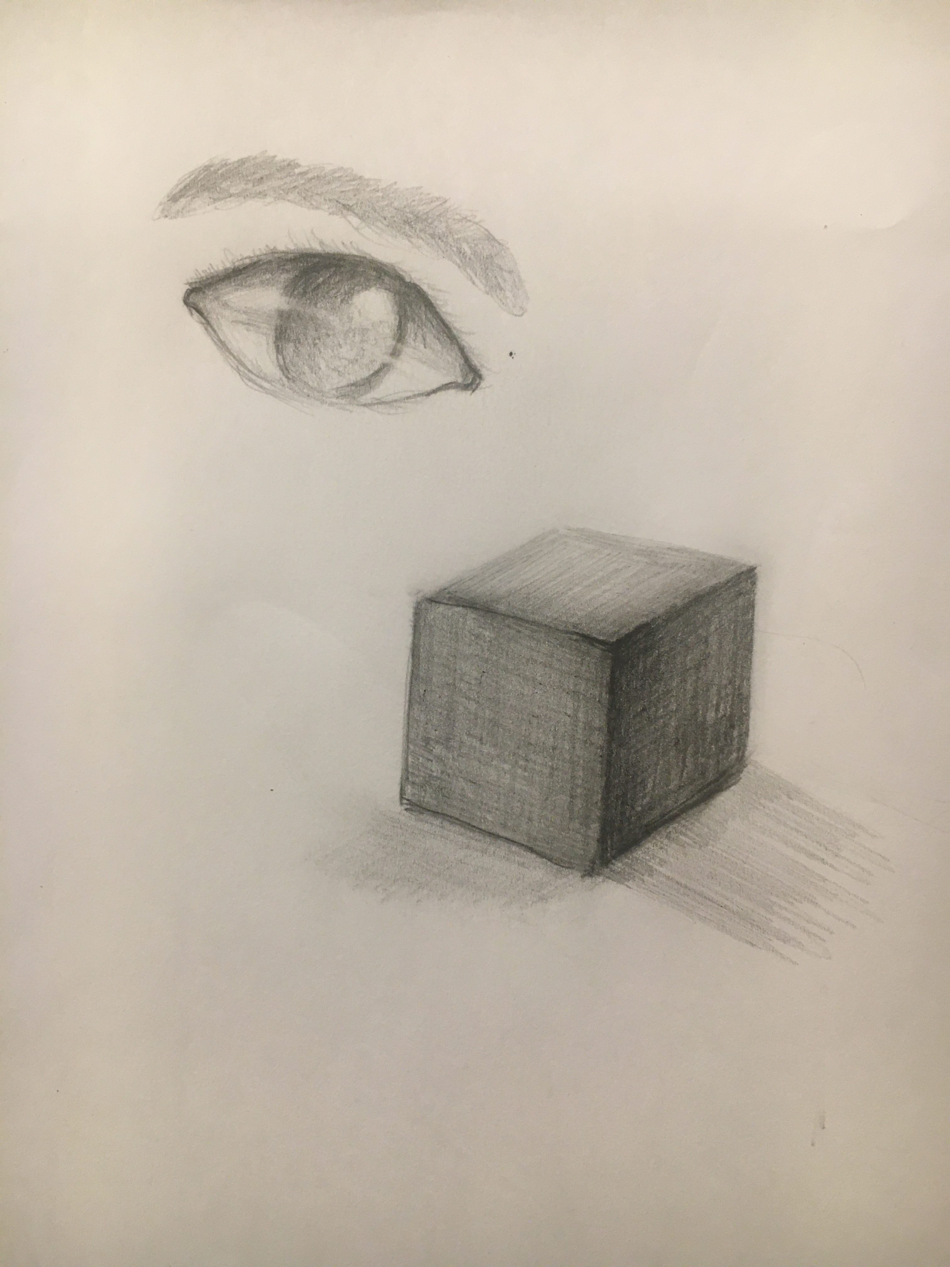 なぜ目と立方体になったのかがすごい謎です。なぜなのか今度ぜひ教えてください!人物画の中で特に目が苦手なのでそれもぜひ教えてくれると嬉しいです。