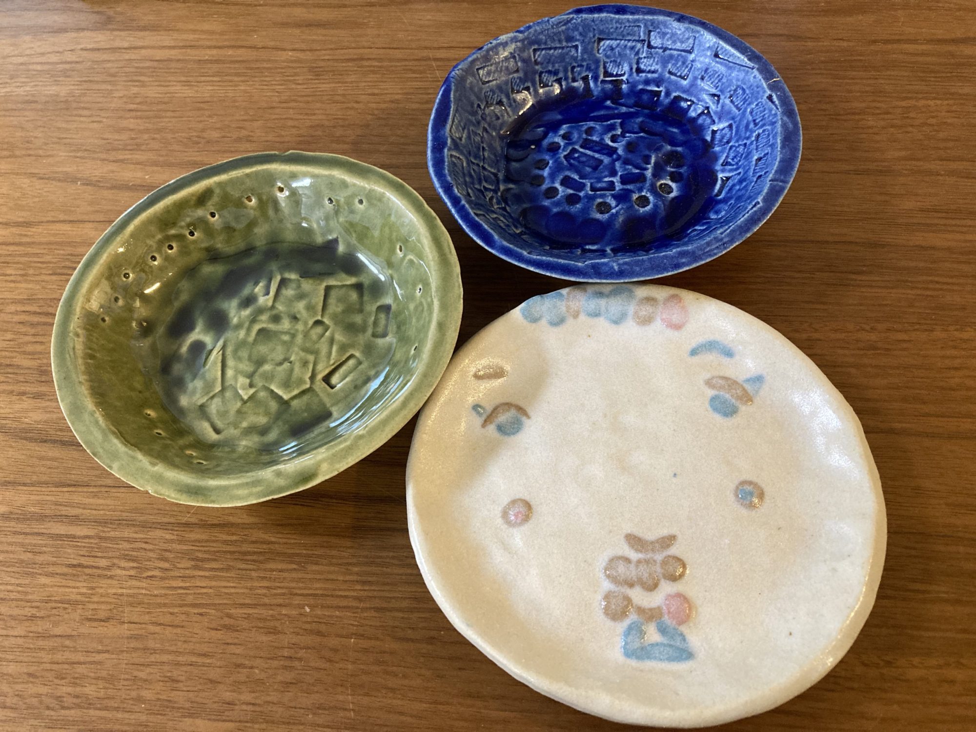やいたせんせ〜 先生2023年3月6日 9:05 AM 暖かさを感じるお皿ですね! 果物もお菓子も、もっと美味しく食べられそうです! 緑のお皿も青のお皿もステキ! お顔の白いお皿もとってもかわいい〜!! ログインして返信する ↓