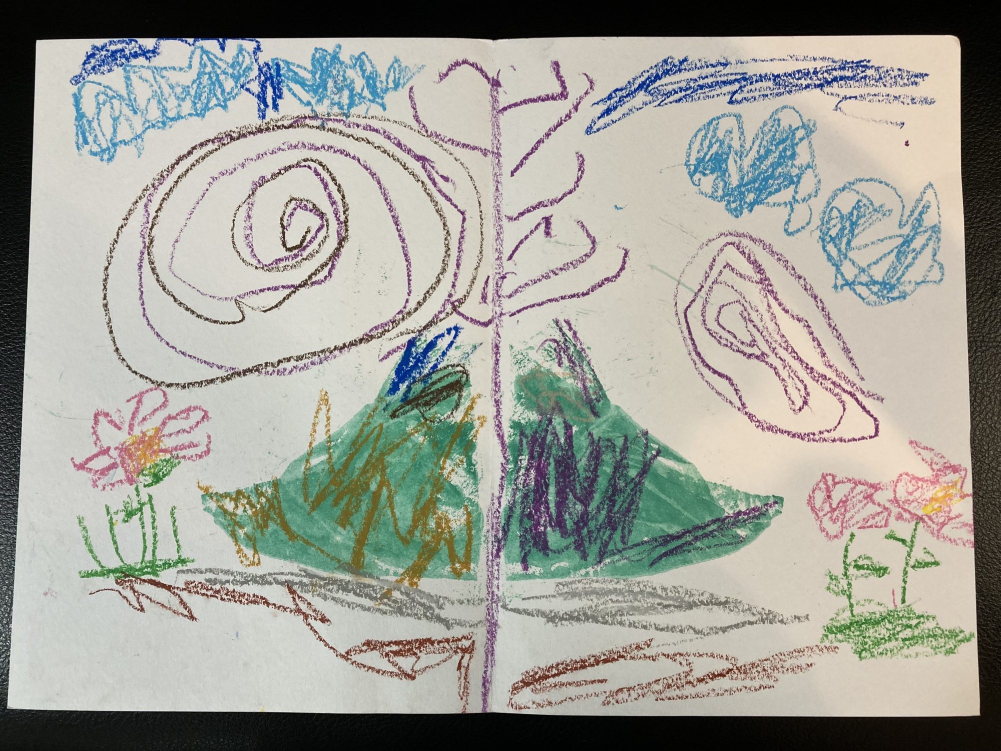 haruna.yamamura チャイルドアートサポーター2023年3月17日 8:37 PM おぉ〜!ぐるぐるが印象的な風景画のデカルコマニー! なるほど!お山のような作品が絵の具で転写した部分なんだね〜 クレヨンで左右の世界が微妙に異なる事で面白さが出てる〜👍🌷 ログインして返信する ↓