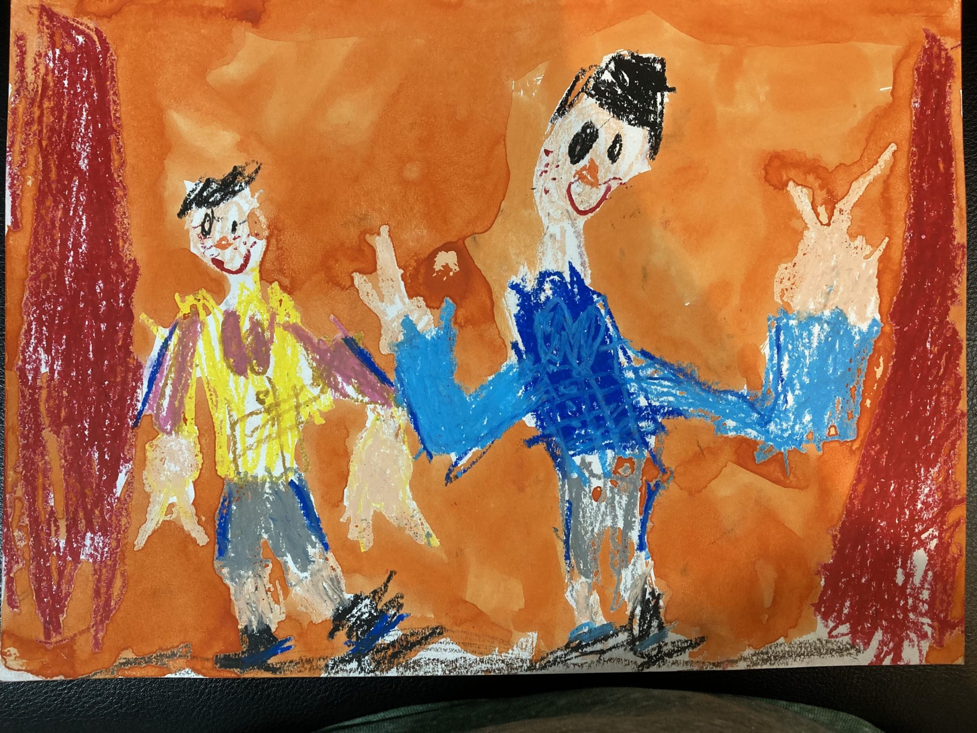 おゆうぎ会の楽しい雰囲気が伝わってくる絵だと思いました。衣装の細かい部分も描けていて驚きました。