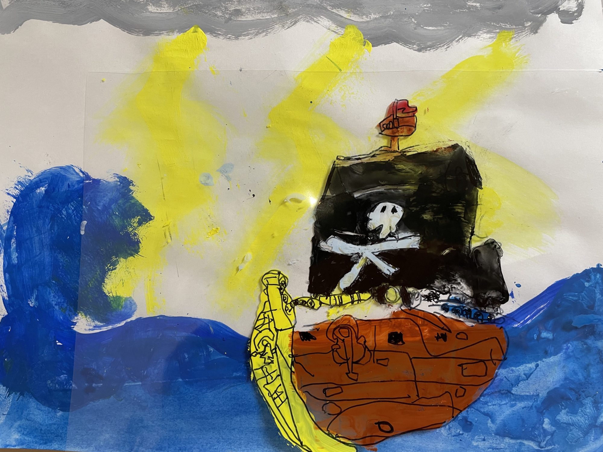 海賊船の大事なポイントである海賊旗が丁寧に描いたことでかっこよくきまっていますね!