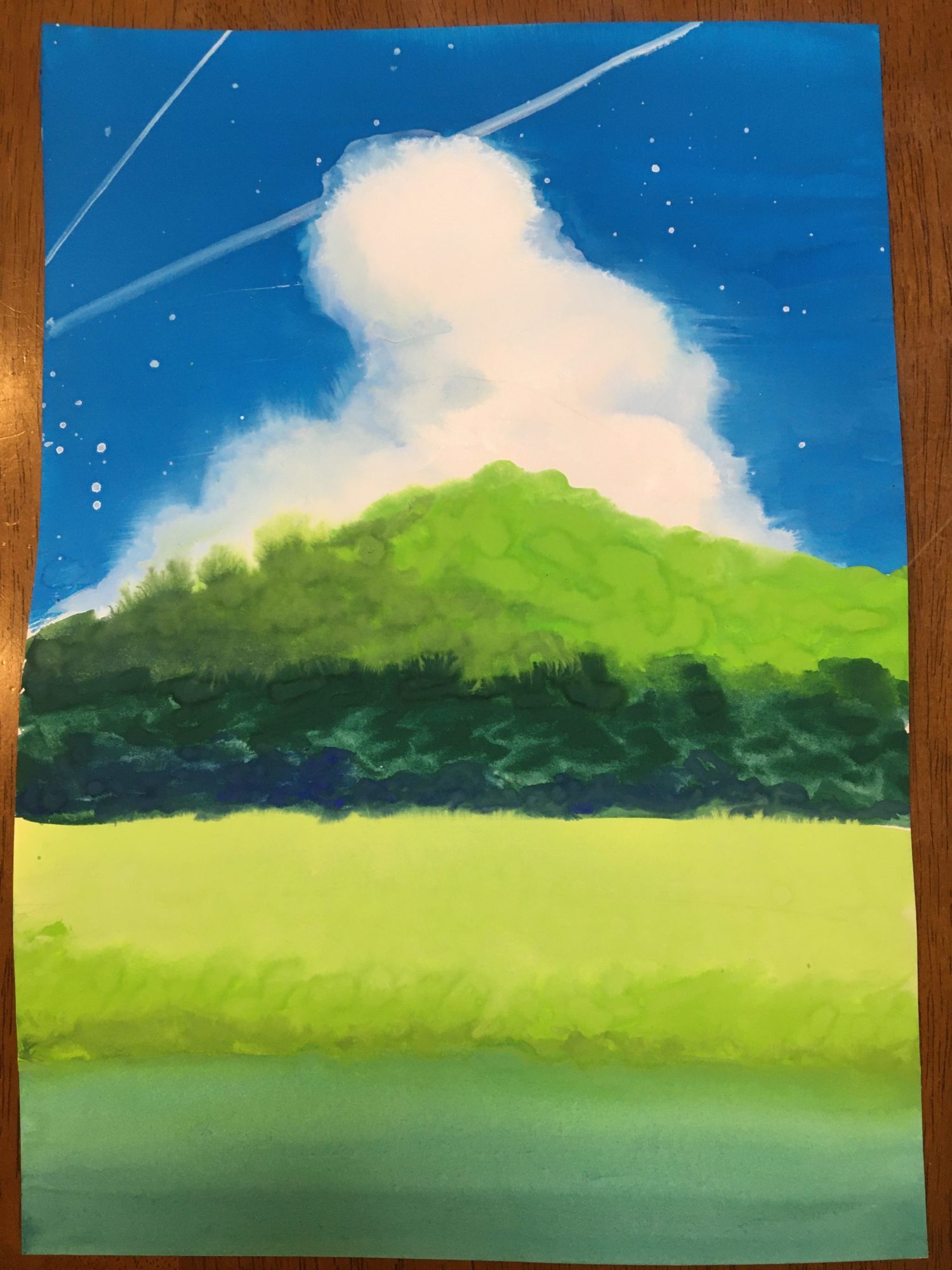 飛行機雲は定規と溝引き棒の技ですね。応用の仕方がすごい!