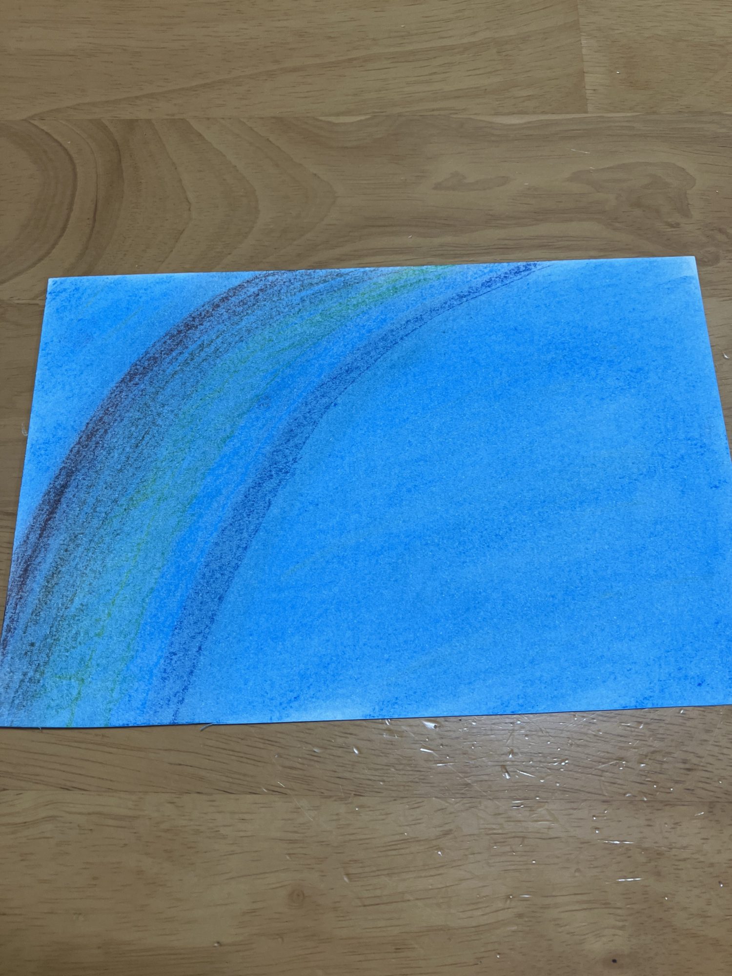 空の色を明るくするために少し黄色を混ぜました。 虹を描いてからぼかす時に、虹の縁に沿ってやるようにしました。