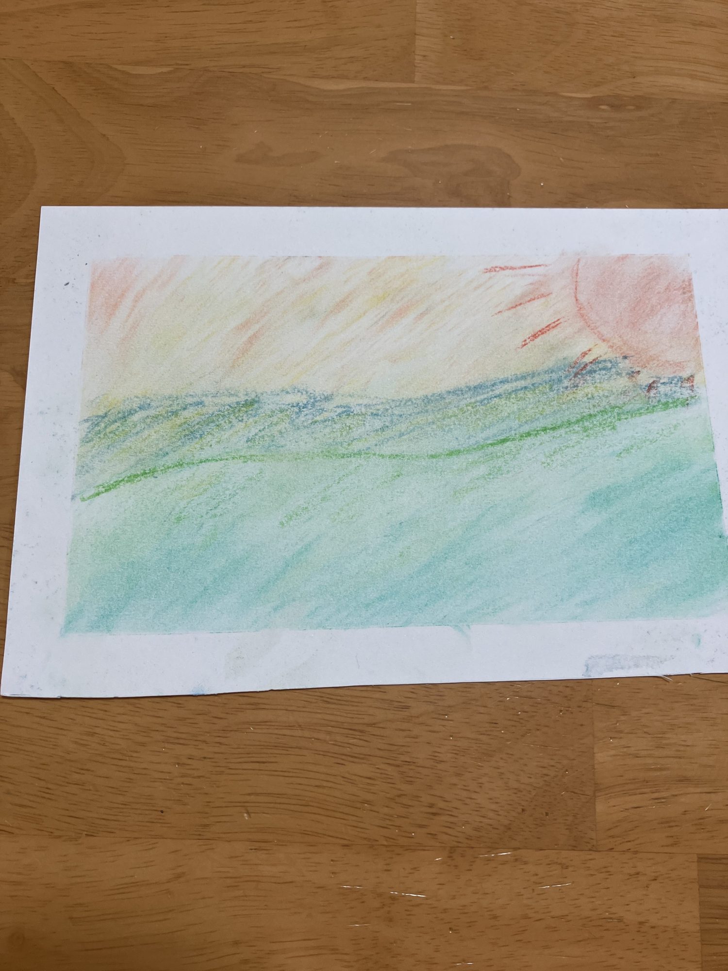 夕焼けっぽさを出すために、黄色とオレンジを交互に混ぜました。