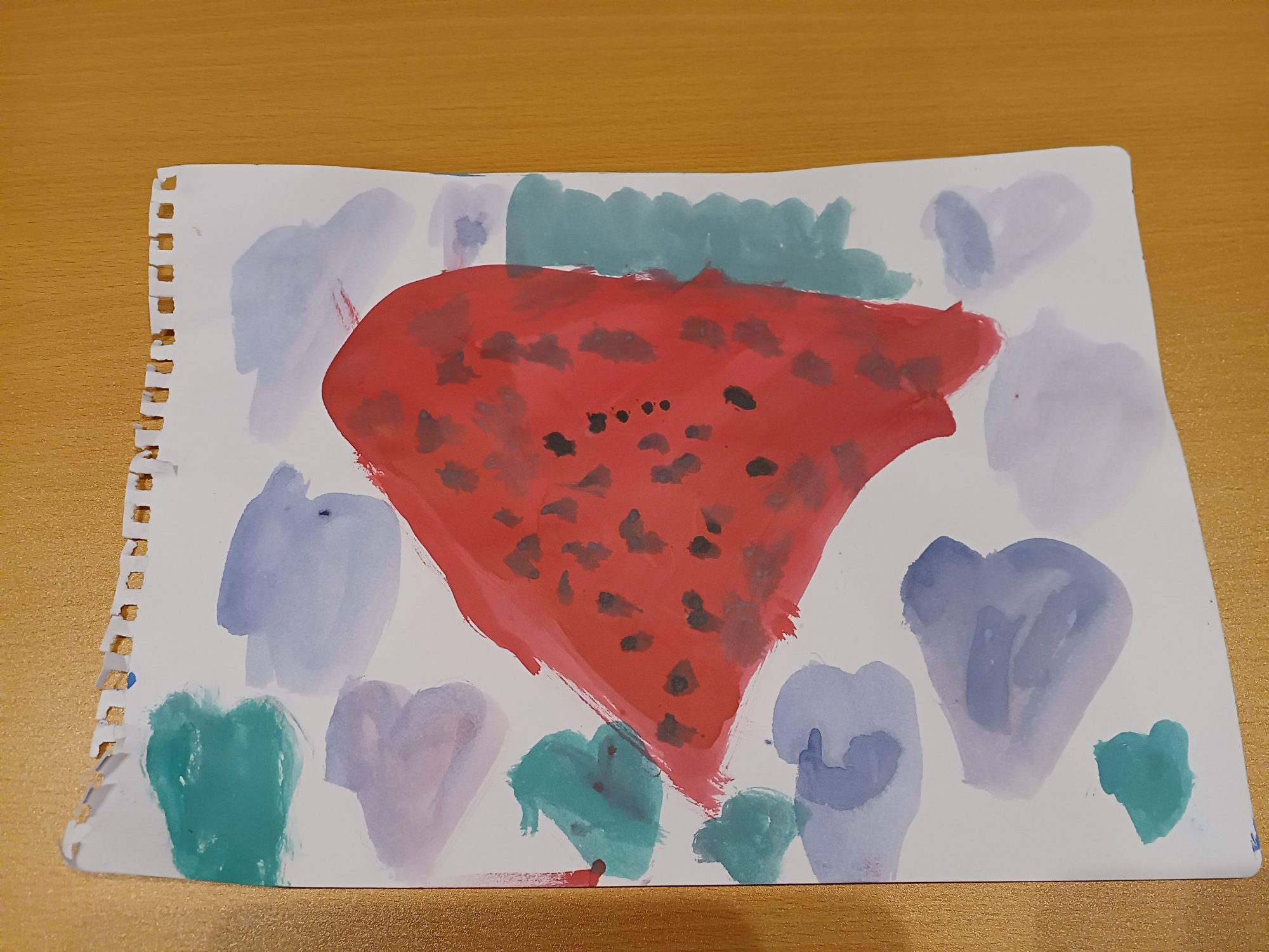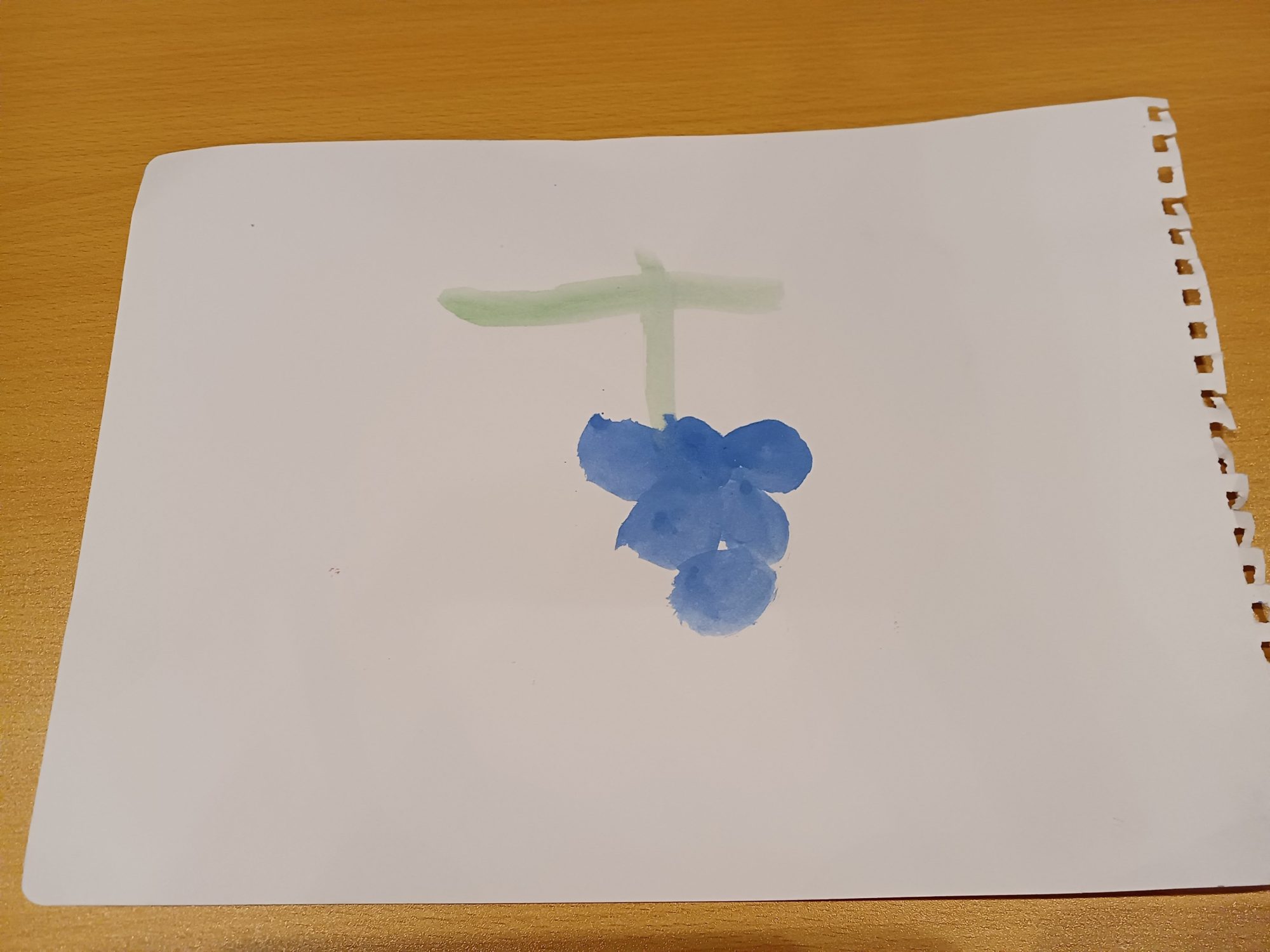 えのぐ で かいたのかな? いちご と ぶどう も かわいく かけてますね