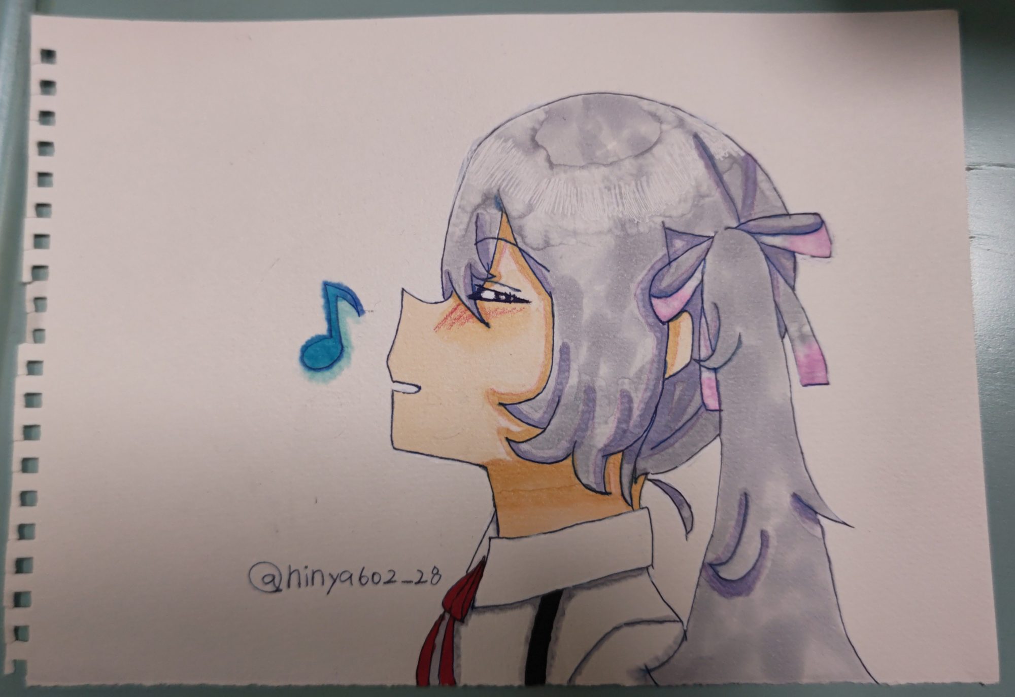 色が綺麗ですね!コピックとかで描いているんですか?初音ミクの横顔はそんなに見ないからすごいと思います!