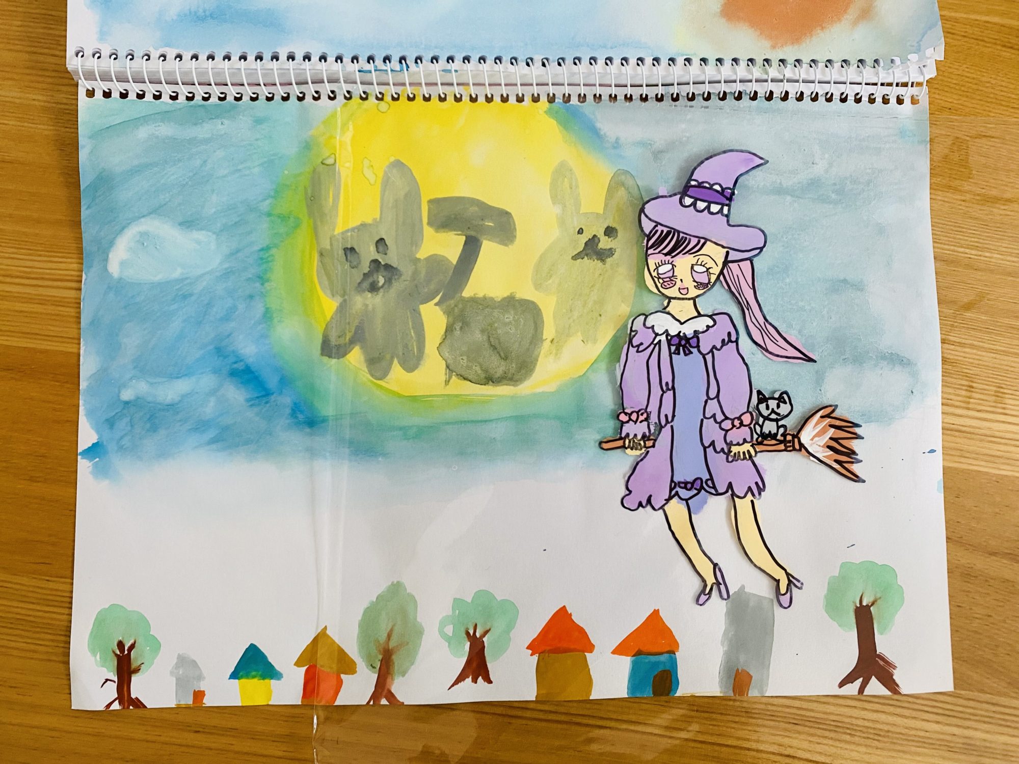 魔女がお空を飛んでる様子がとてもすてきです!