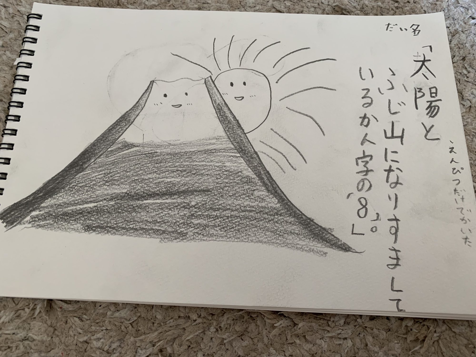 コメントで顔がかわいくかけたって描いてある通り、太陽もふじさんもすごくやさしいにっこり笑顔がすてきだね☺️