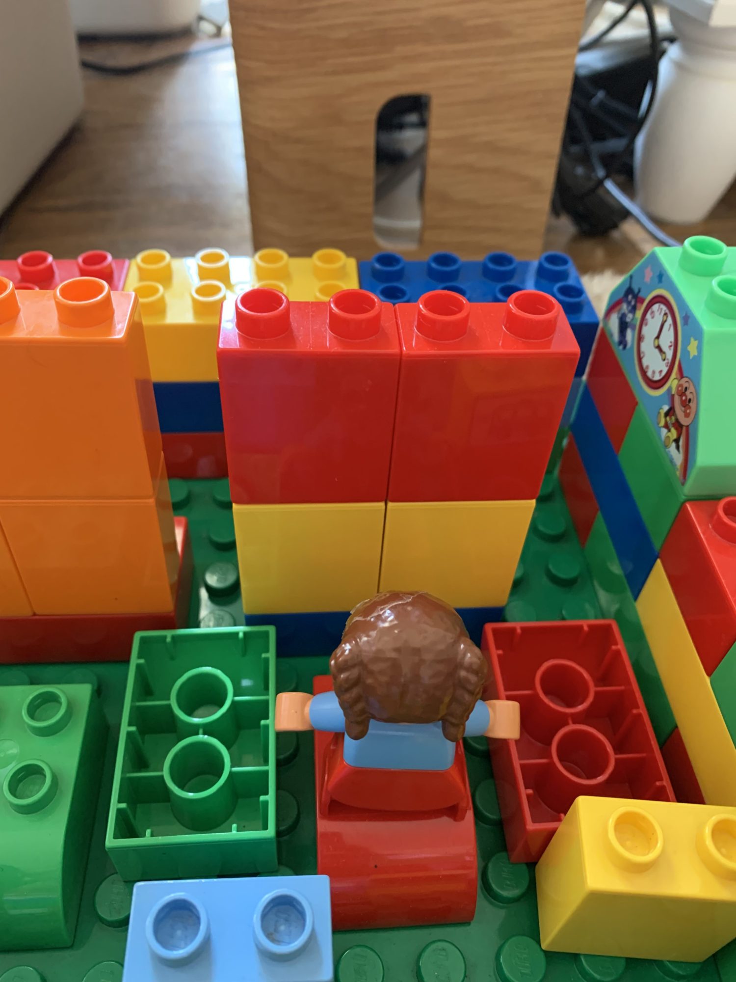 1枚目の写真は,大きめのパソコン💻です。2枚目の写真は自分が絵🖼を描いているところです。3枚目も同じです。4枚目はトイレ🚽です。トイレットペーパーも作りました。
