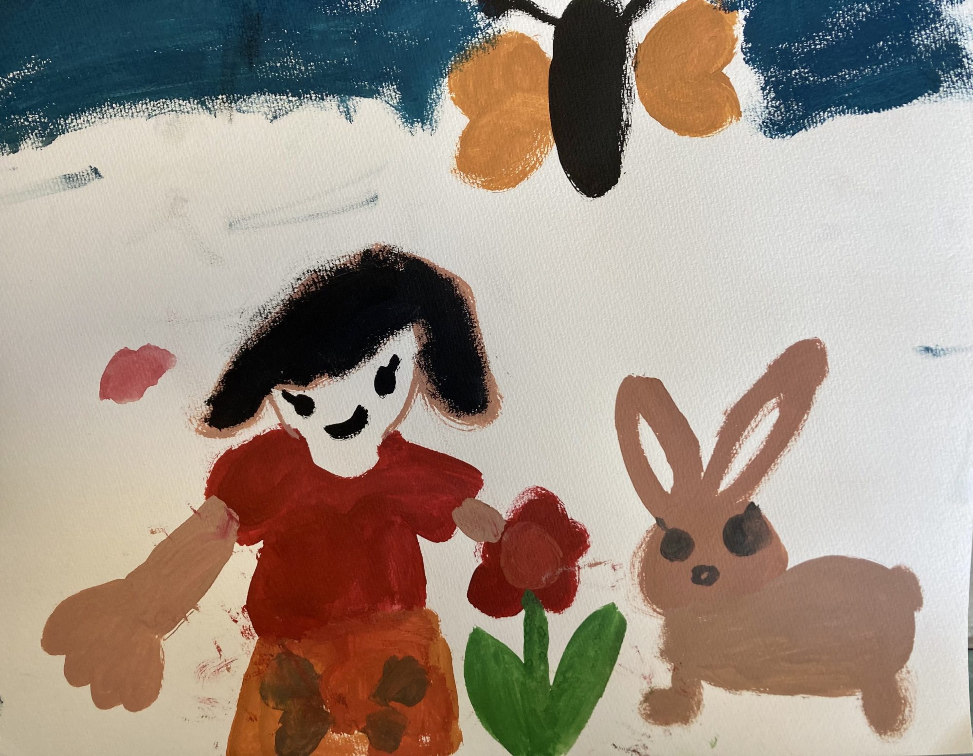 うさぎさん、とても可愛く描けましたね。色を混ぜて素敵な色を作りましたね。
