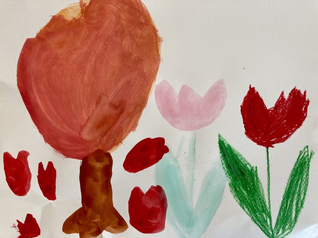 真ん中の色違いのチューリップゆうた先生も気に入ってます✨優しい色合いで癒されます!