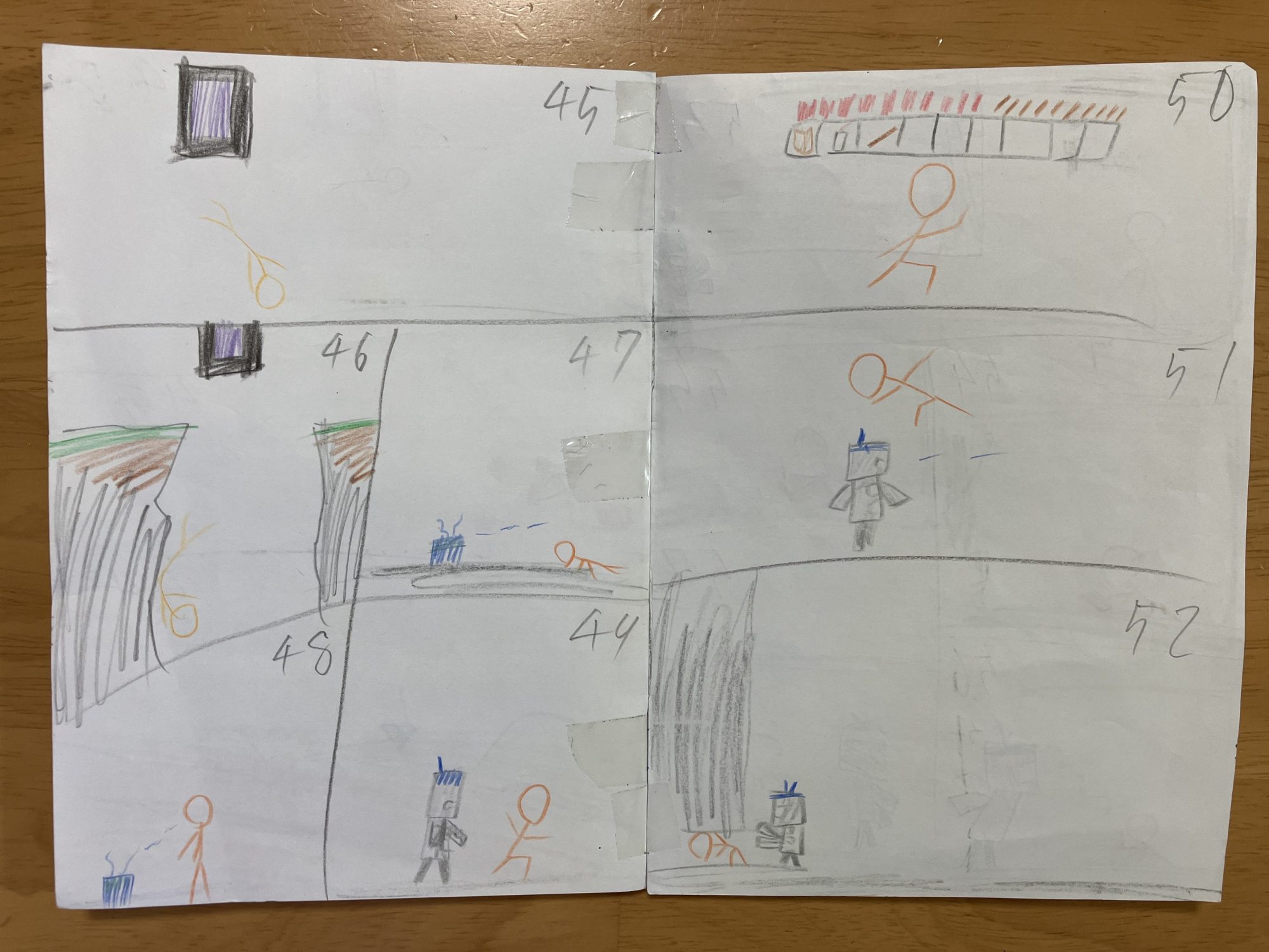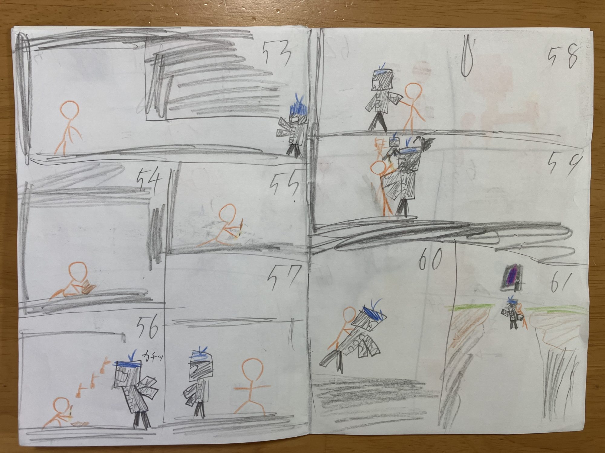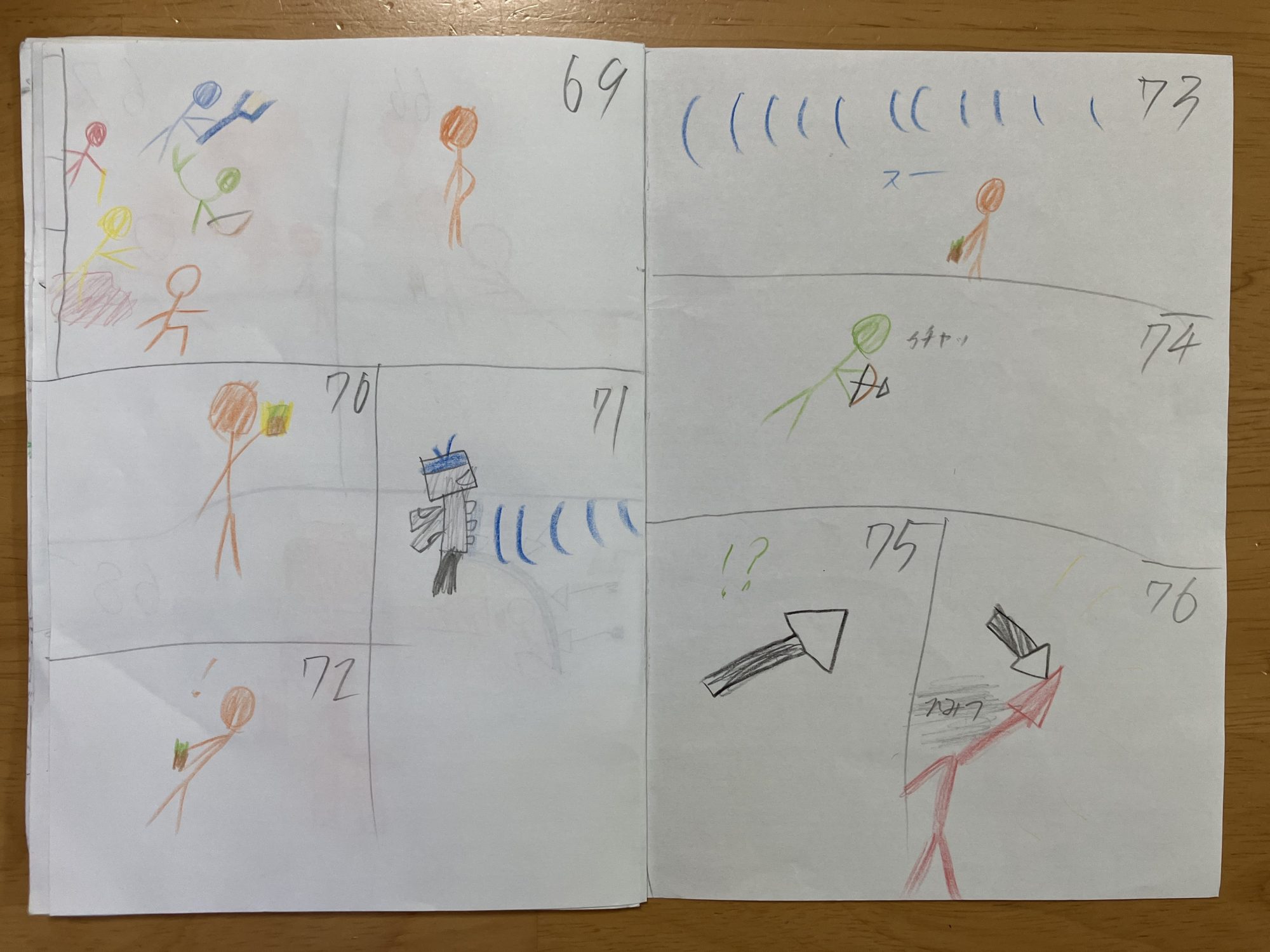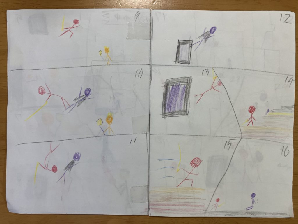 最初のオレンジの主人公(?)が持っている棒がコマを追うごとに